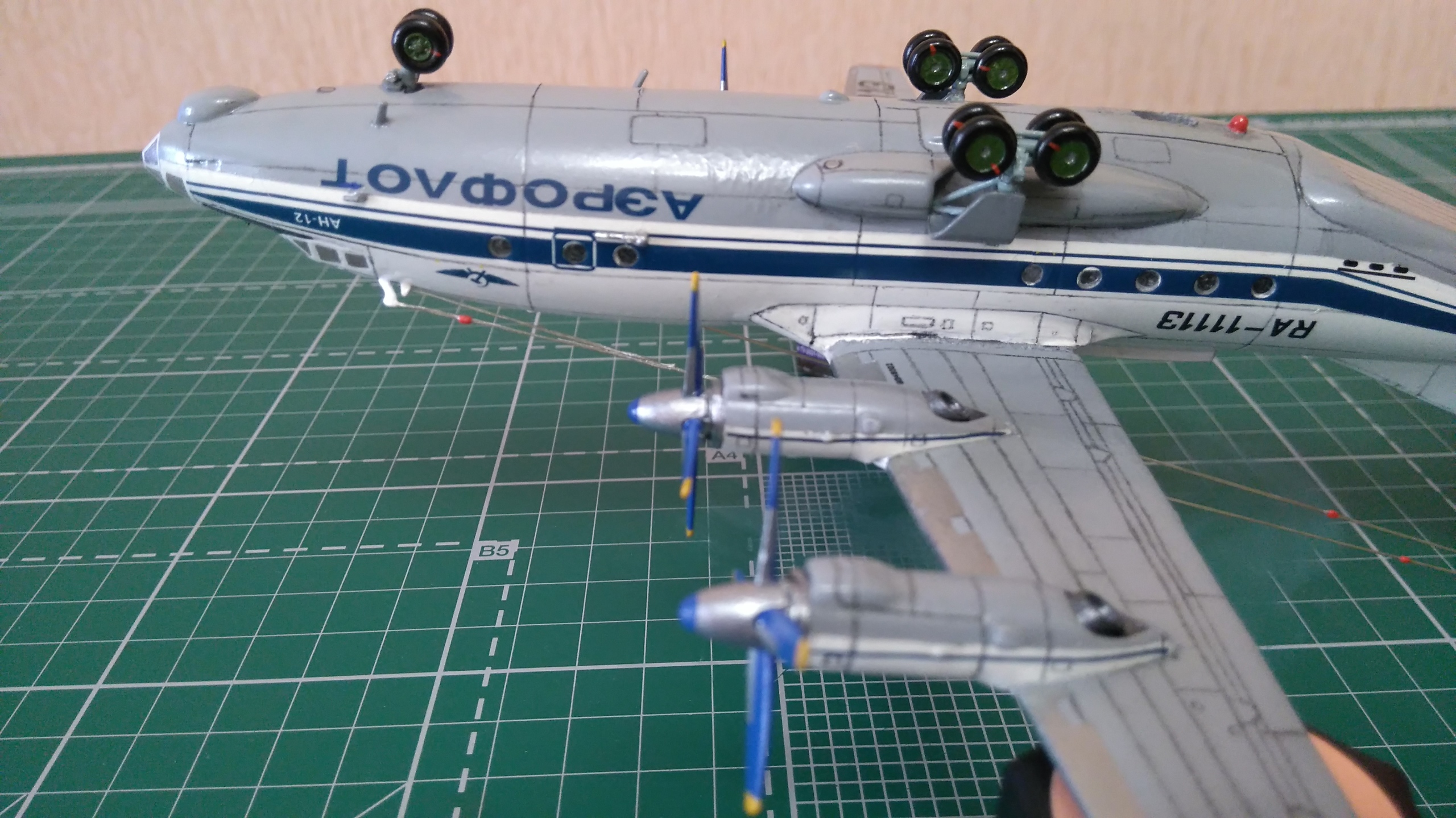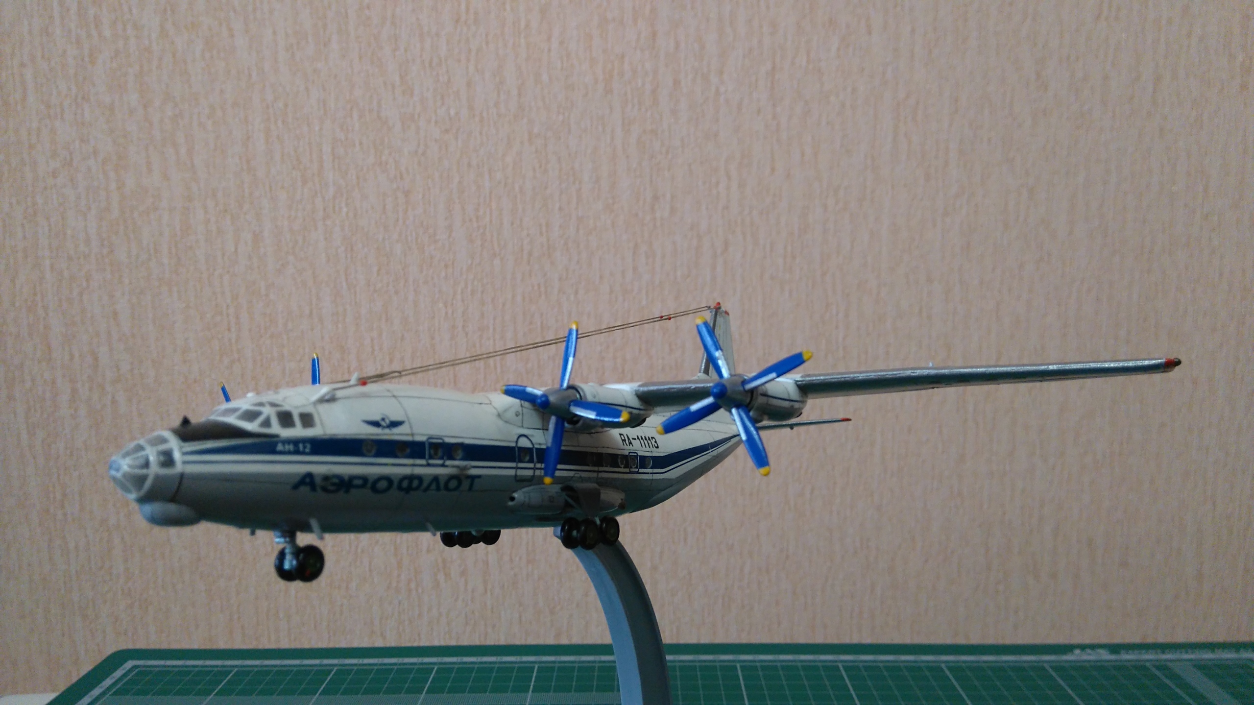 Добрый день коллеги по цеху. Выставляю свою очередную модель самолета ан-12бк в гражданской версии от восточного экспресса. Модель собрана из коробки с некоторыми доработками.
