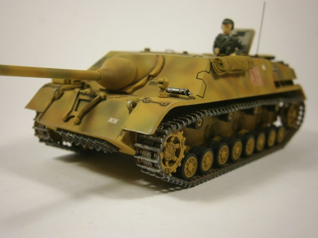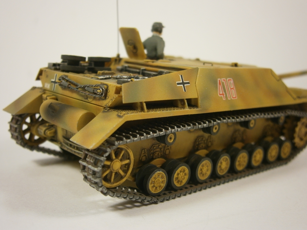Хоть я и авиатор в моделизме, но наземная техника в 72-м меня притягивала всегда. И не только автомобили, но и броня. Представляю вам свою старую модель от ESCI, которую я изготовил в 1998 году. Модель немного дорабатывалась. В первую очередь это основные катки, которые имели странную конусообразность на торцевой части, пришлось этот косяк долго и нудно исправлять. Длинное дуло мне показалось более симпатичным, чем тот короткий обрезок с дульным тормозом, который предлагал производитель. Новое дуло было выточено из подходящего литника. Ну и с шанцевым инструментом слегка поработал. Трос самодельный, танкист из набора. Дека родная. Брезентовая скатка из тончайшего батиста, но всё равно вышла грубовато. Боковые экраны навешивать не стал. Красил Ревеллом №16, затем, как мог, нанёс подобие камуфляжа. Ни о каких смывках тогда и не слыхивал. Просто запачкал модель коричневой гуашью и потом оттёр лишнее. Вроде всё. Что не понравилось в данной модели – это маленький диаметр ведущего переднего колеса – очень портит восприятие, ну и с гусями не очень получилось – нет полноценного центрального гребня, а делать самому не придумал как тогда. Смотрите, разбирайте, критикуйте. Спасибо!