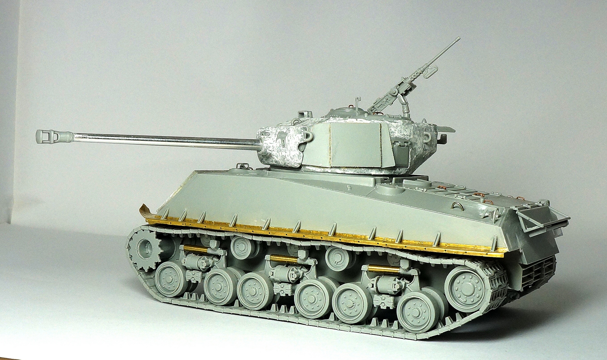 Очень смотрибельный "шерман"! Но вот гусеницы вызывают вопросы...что-то с ними не так...