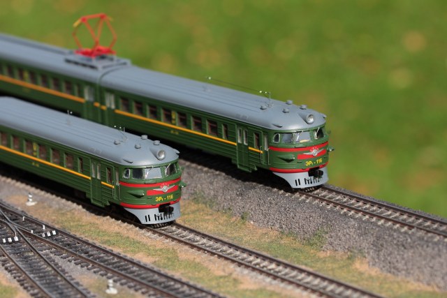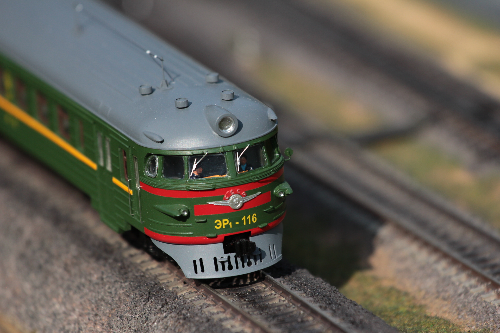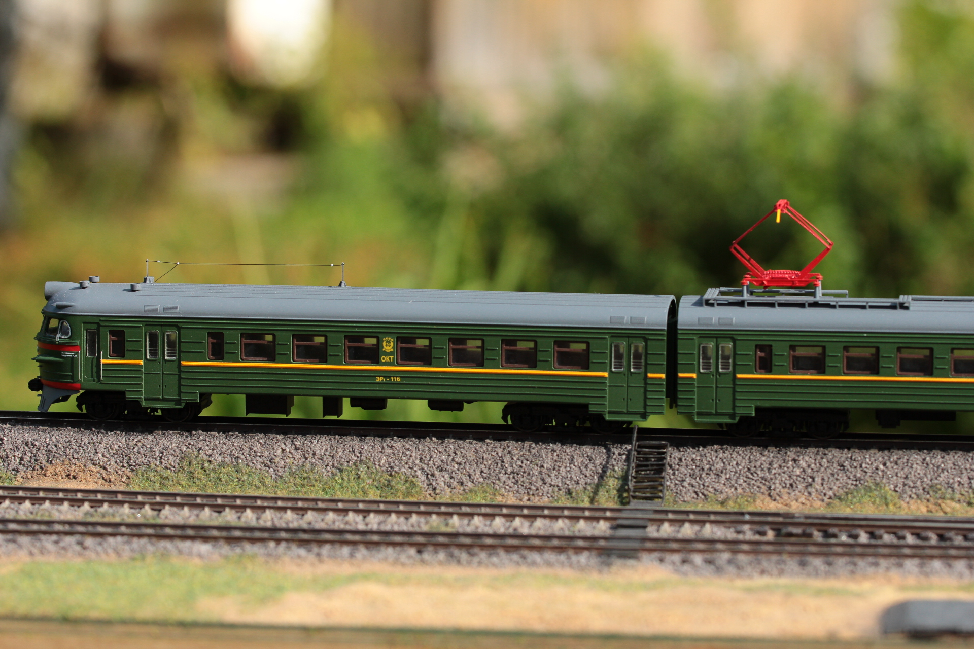 Всем привет! Представляю модель электропоезда Эр1, кит Вадима Караго. Материал смола, но кит собирается не хуже пластика. Некоторых деталей не хватало, самое трудоемкое было изготовить стекла кабины с нуля, из тамиевского пластика, добавлена антенная растяжка, щетки, зеркала, пантографы фирмы СвеТтофор. Окраска - автоэмаль, лак футура.