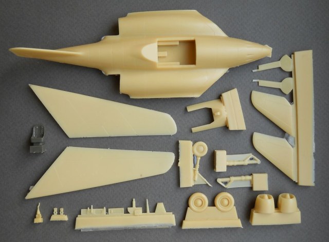 Модель из смолы от фирмы Planet models в масштабе 1/72 (номер по каталогу PLT131) упакована в картонную коробку с боковым открытием. Литьё нормального качества, имеются мелкие дефекты. Неплохо выполнены мелкие детали, хотя предлагаемый интерьер бедноват. Ваку-фонарь присутствует в двойном экземпляре и выглядит хорошо. Весьма непонятно решение разработчика едва наметить углублением входные тракты к двигателям. Это, пожалуй, самое слабое место у модели. Декали прилагаются на один вариант и смотрятся отлично. Инструкция вполне информативна.