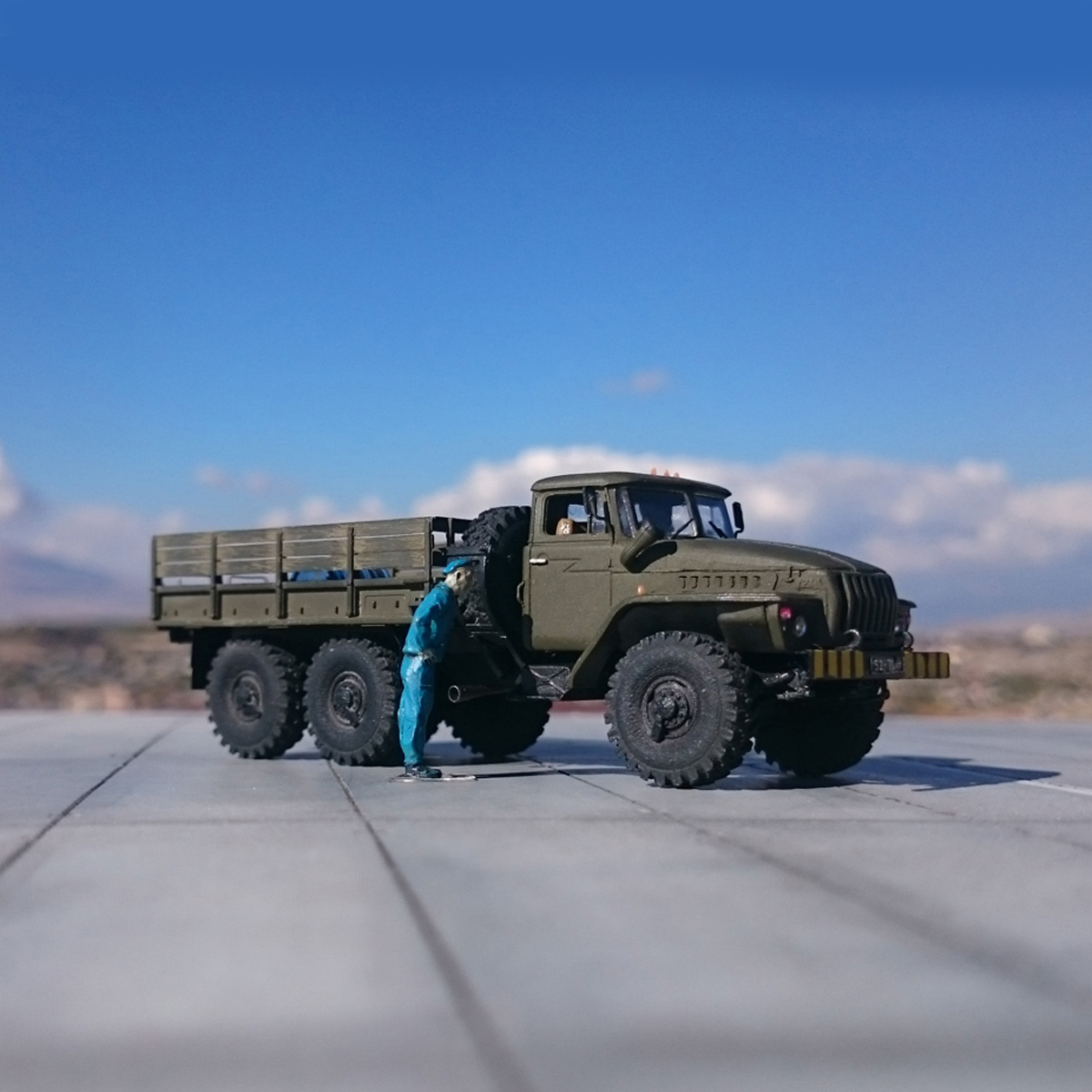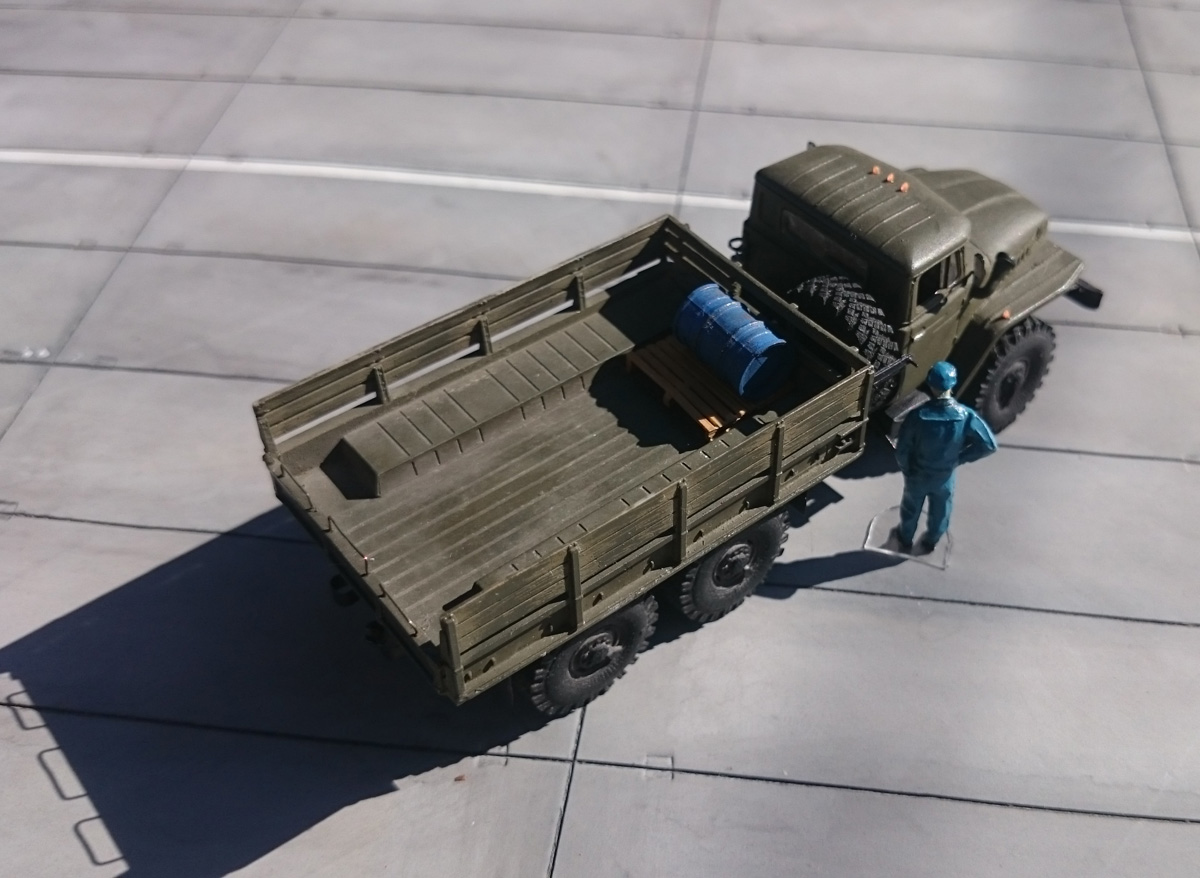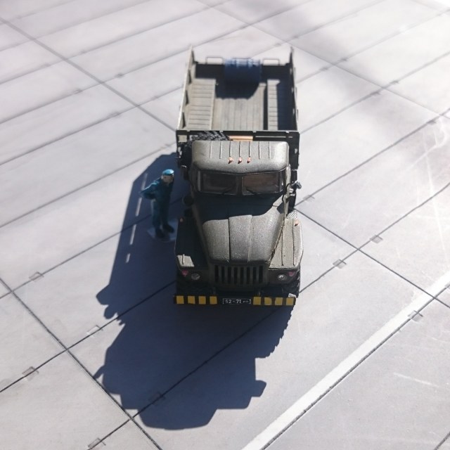 Хорошо получился Урал. Не видно АйСиЭмовской кривизны кабины - зачет! Кузов - как живой. Колёса только не бритые ). Наверное, можно было попробовать слегка со шкурить этот неуместный рельеф с боковин.