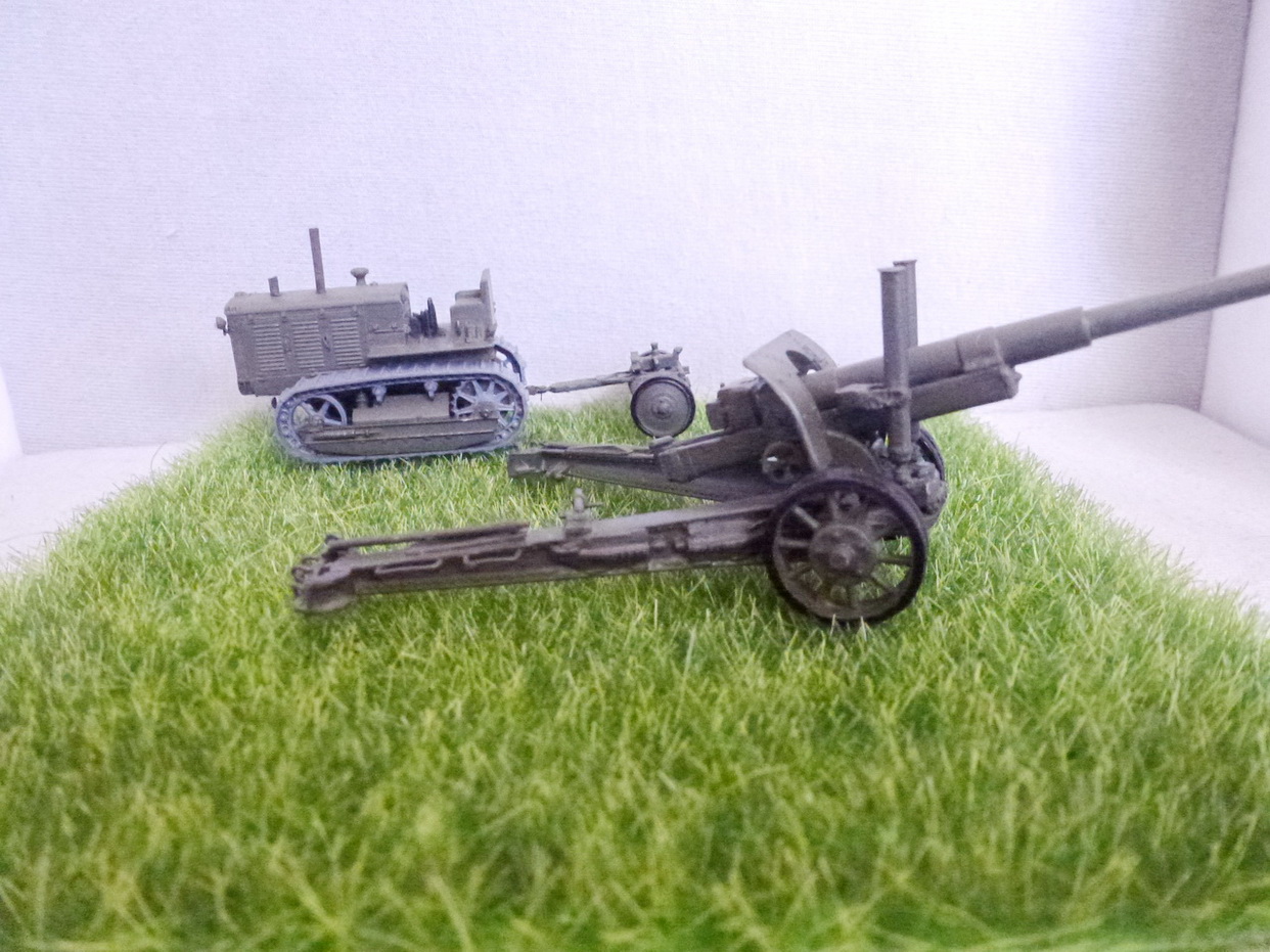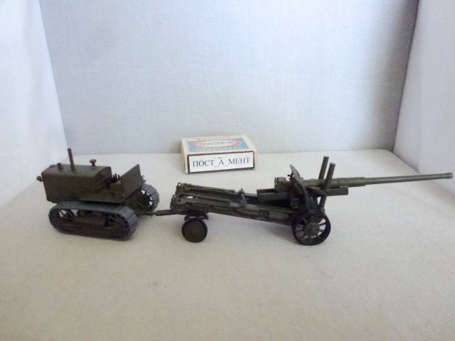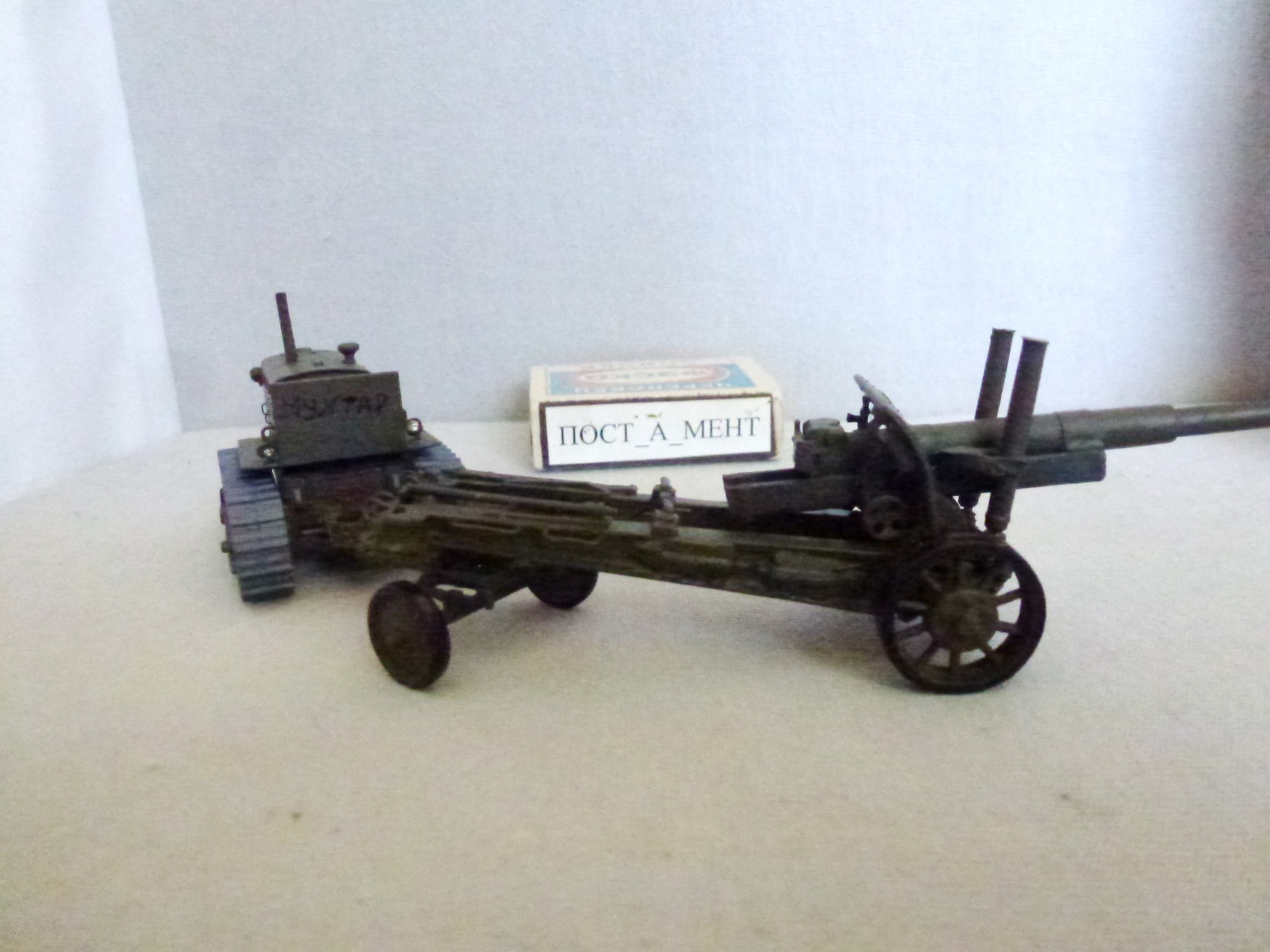 Представляю вам А-19, младшую сестру МЛ-20 в 72м....Производитель безальтернативен....Задача была ПРОСТО собрать, придумать как сделать вертикальное наведение "живое"...ну и тягач добавить. Много мелочей на станинах добавил, высверлил гидроцилиндры....Мне кажется получилось!