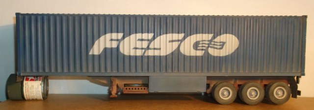 Со сборкой контейнера особых проблем не было. Только пришлось немного попотеть при проделывании бокового проёма для дверей. Пластик толстоват, да ещё гофра. На изготовление рамы полуприцепа пошли эвергриновские швеллера и профили.