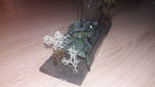 Доброго времени суток.Представляю Вашему вниманию набор из серии Хот Во производителя Звезда Т-72Б.Мною была произведена глубокая модернизацией до Т-90.Собирается данный масштаб без проблем.Детализация на высоком уровне , что и стимулировало меня сделать конверсию данной модели. Мною добавлено работающая штора , пулемет на башне ,антенна ,датчик погоды ,фонарь ,труба выхлопа, система питания от баков к двигателю ,троса ,тучи ,отлив на передней панели и крюки для буксировки.В материальной части не силен поэтому названия написал как знаю.Раскрашивал акриловыми красками Звезда.Красил кистью. Смывка собственного производства -уайт спирт смешанный с масленной краской. Модель покрыта матовым лаком для автомобилей. Единственное не люблю грязнить гусеницы,поэтому они чистые .Модель сделана для мини диорамы и вставлена в коробку из под новогодних игрушек, так сказать чтобы не пылилась.Материал для конверсии использовался проволока , тянутый литник , всякая мелочь, штора из литника на Т-90 в масштабе 1: 72 оставшийся после сборки БМПТ в том же масштабе.Штора внутри покрашена красной краской от Звезды точки из тянутого литника черного цвета ,все покрыто бесцветным лаком для ногтей.Особой привязки не к чему нету.