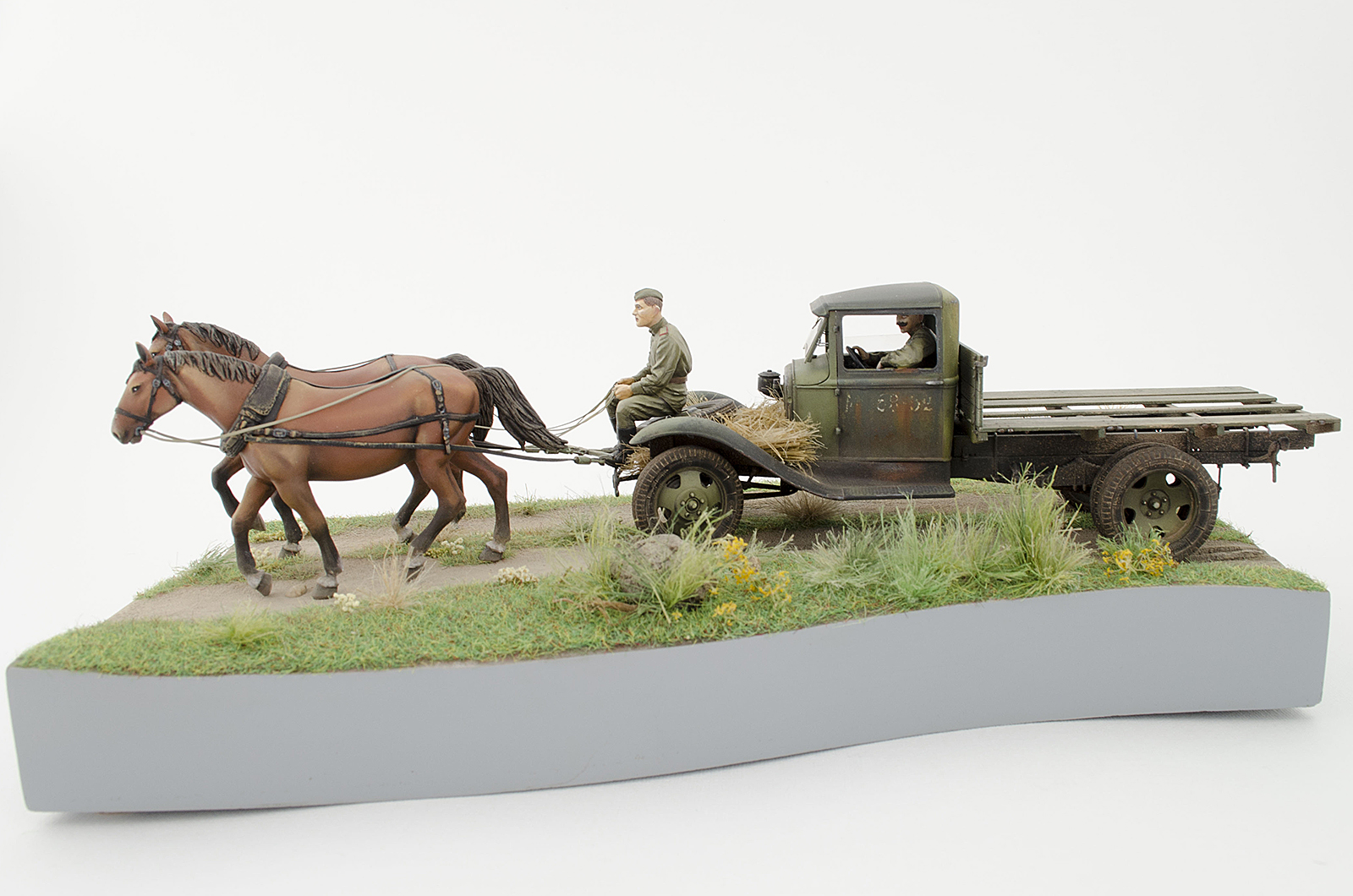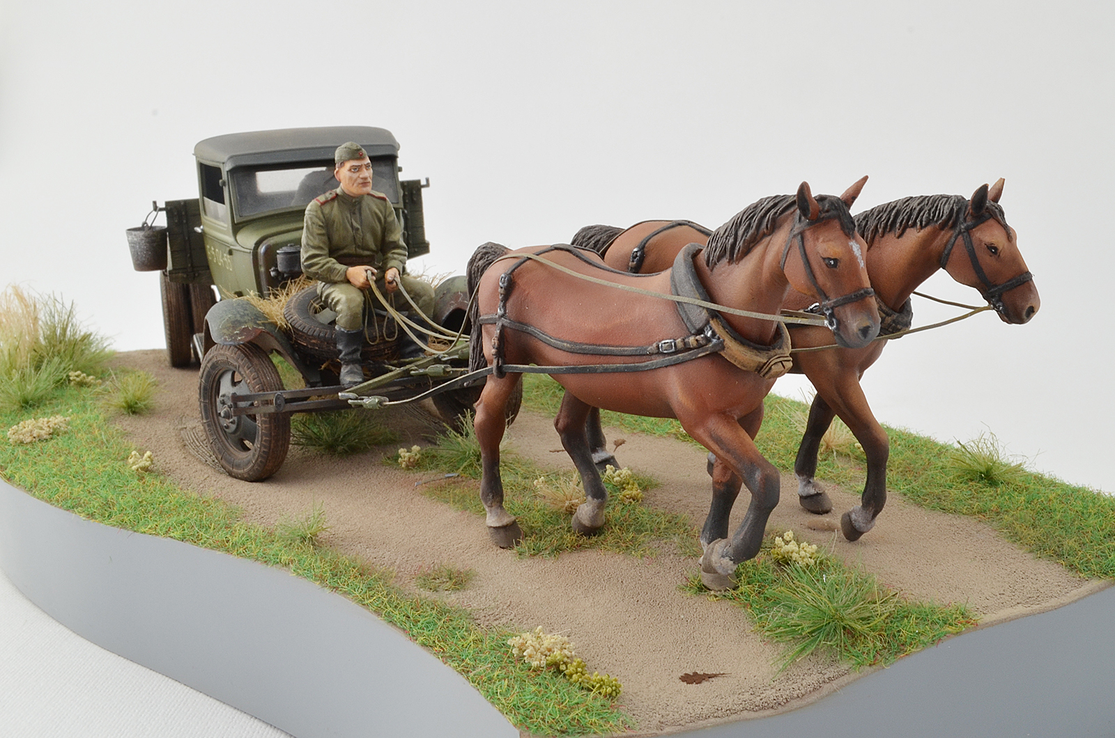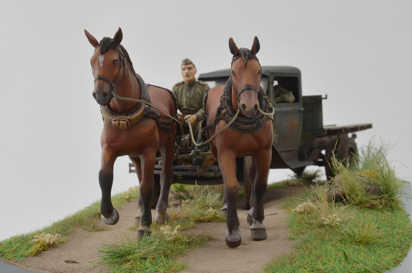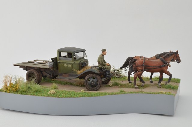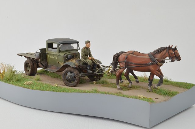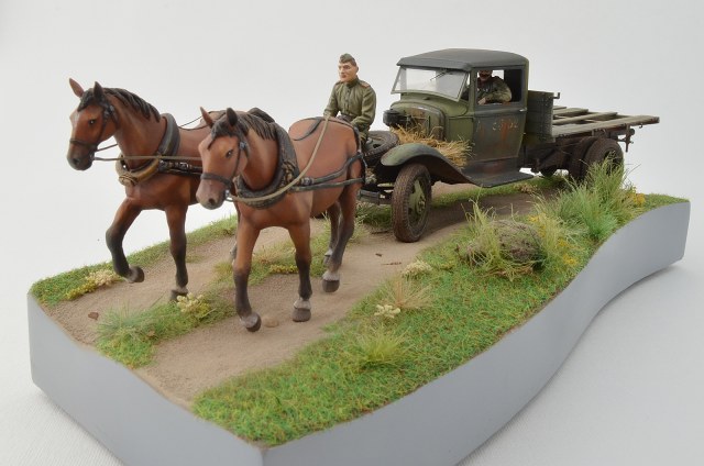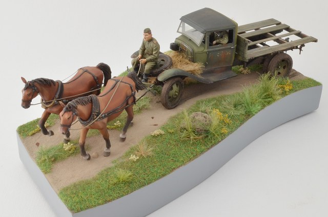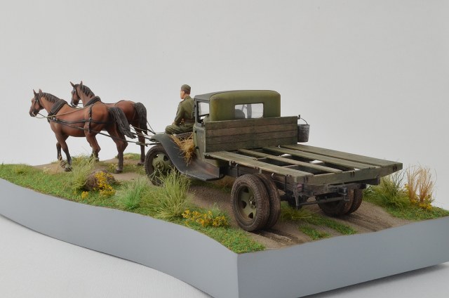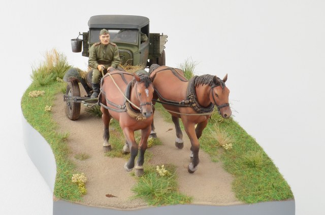 Спасибо, по следам согласен, было бы реалистичней, лошадки не лоснятся потому что витаминов не хватает, военное время однако, а в кузове какой смысл всякий хлам возить, они же на ремонт едут )), а не на дачу старый диван закинуть.