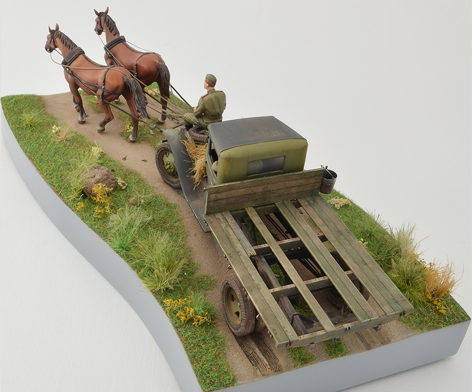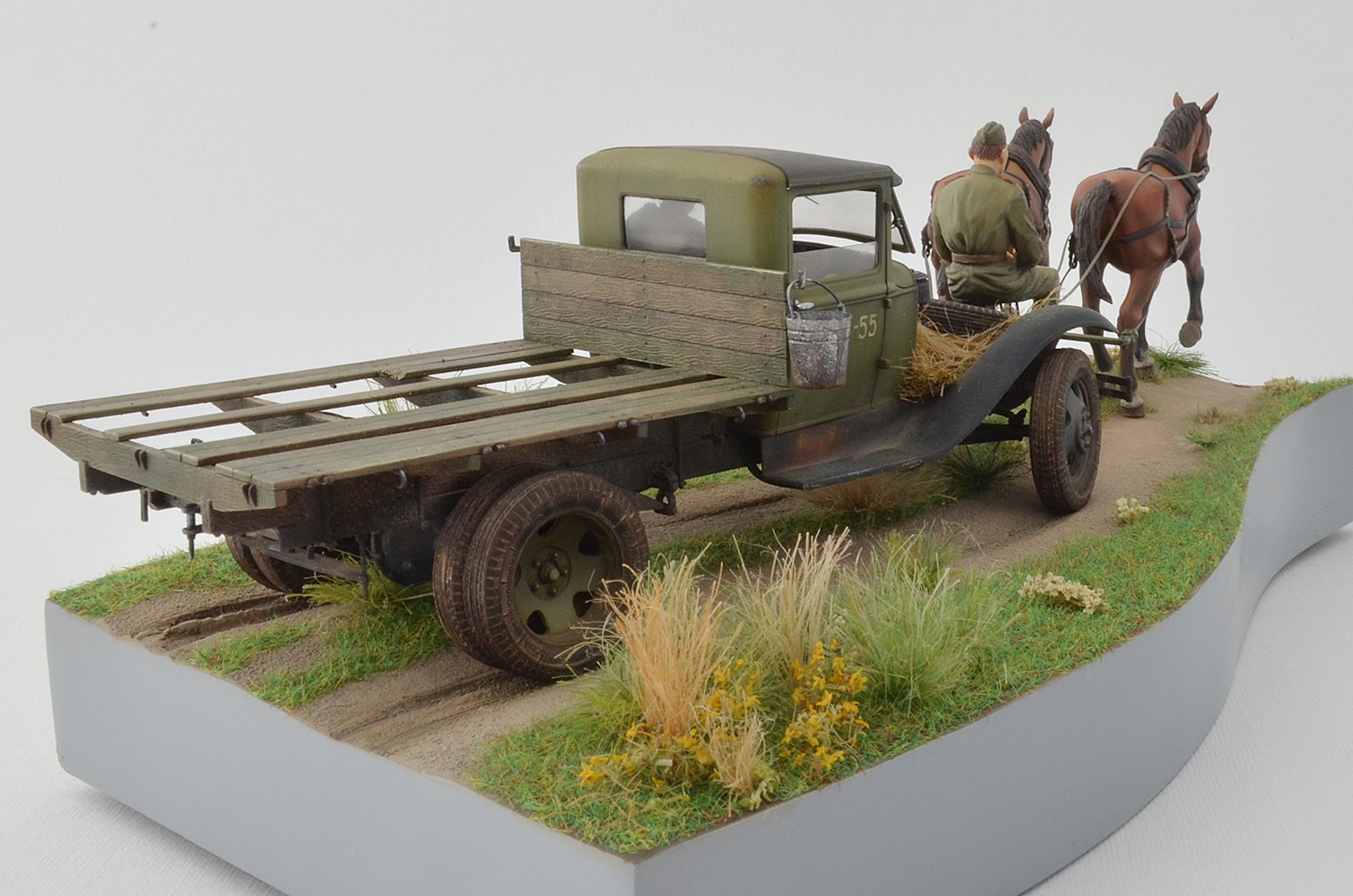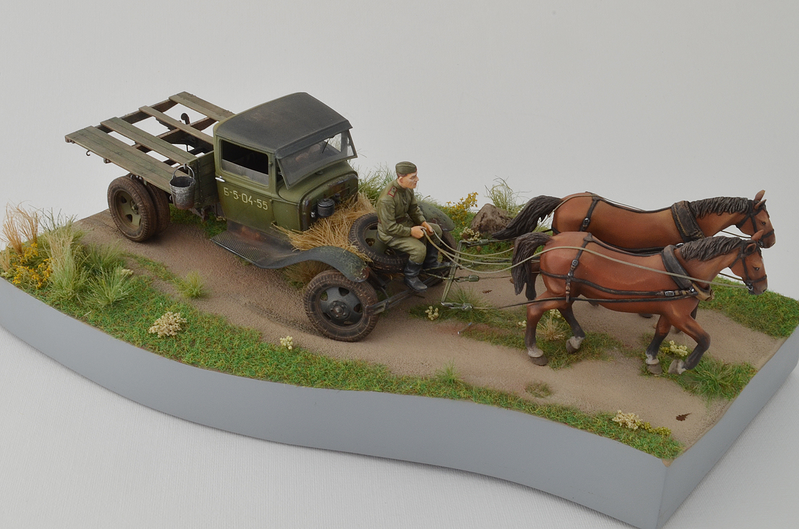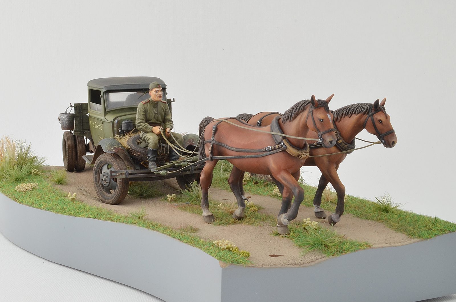 Спасибо, по следам согласен, было бы реалистичней, лошадки не лоснятся потому что витаминов не хватает, военное время однако, а в кузове какой смысл всякий хлам возить, они же на ремонт едут )), а не на дачу старый диван закинуть.