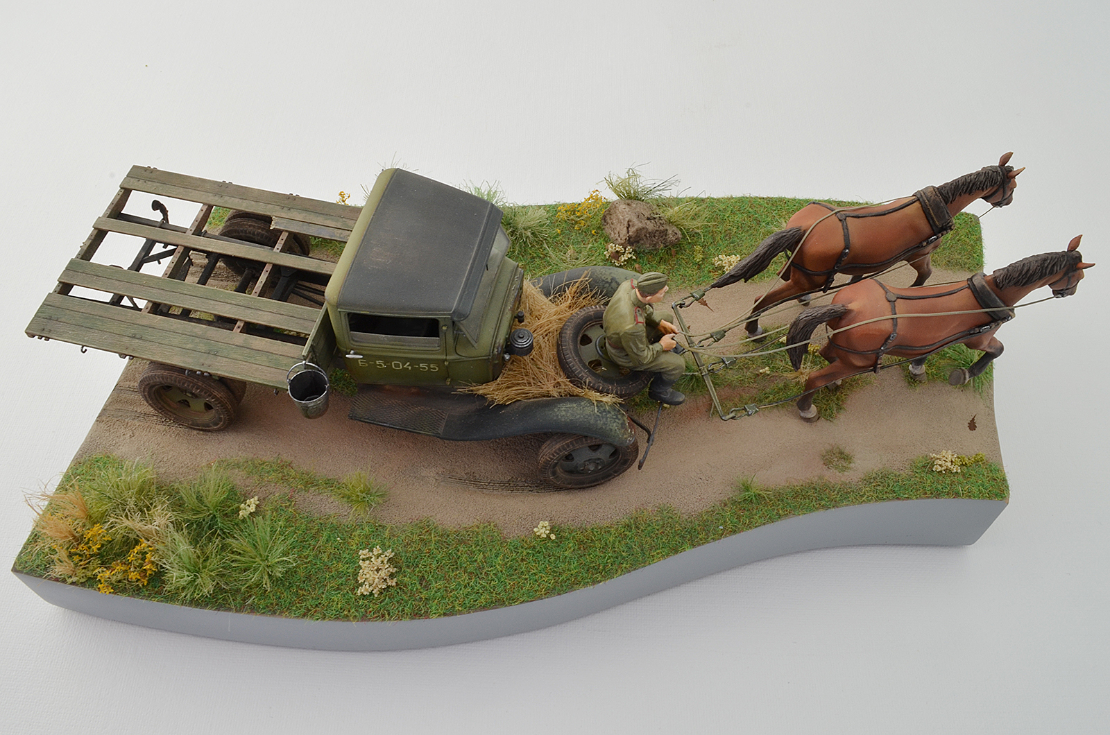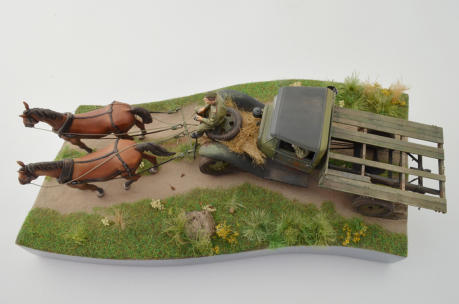 Покраска Tamiya, пигменты MIG, масло художественное для лошадок, Vallejo для фигурок. Основание песок + электростатический флок, лен сантех. , гербарий из полей. (делал впервые)