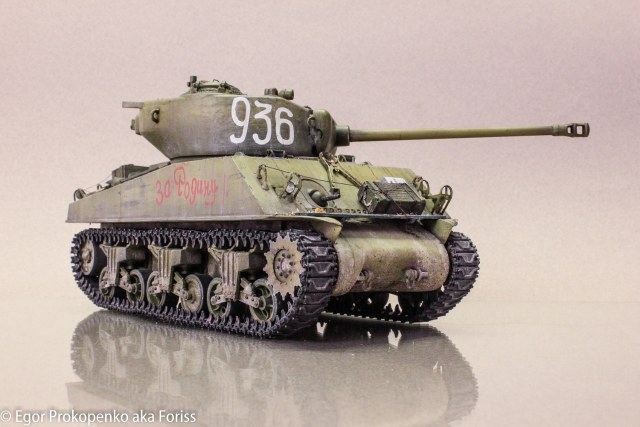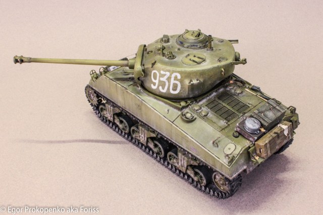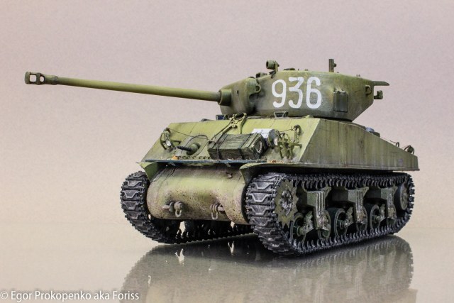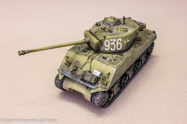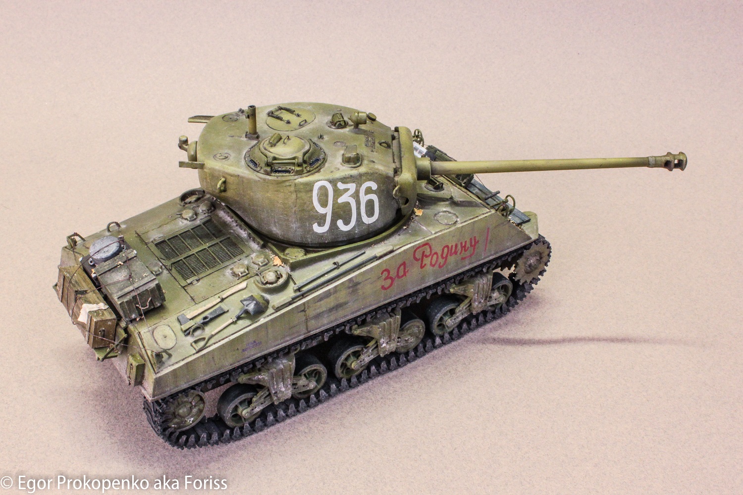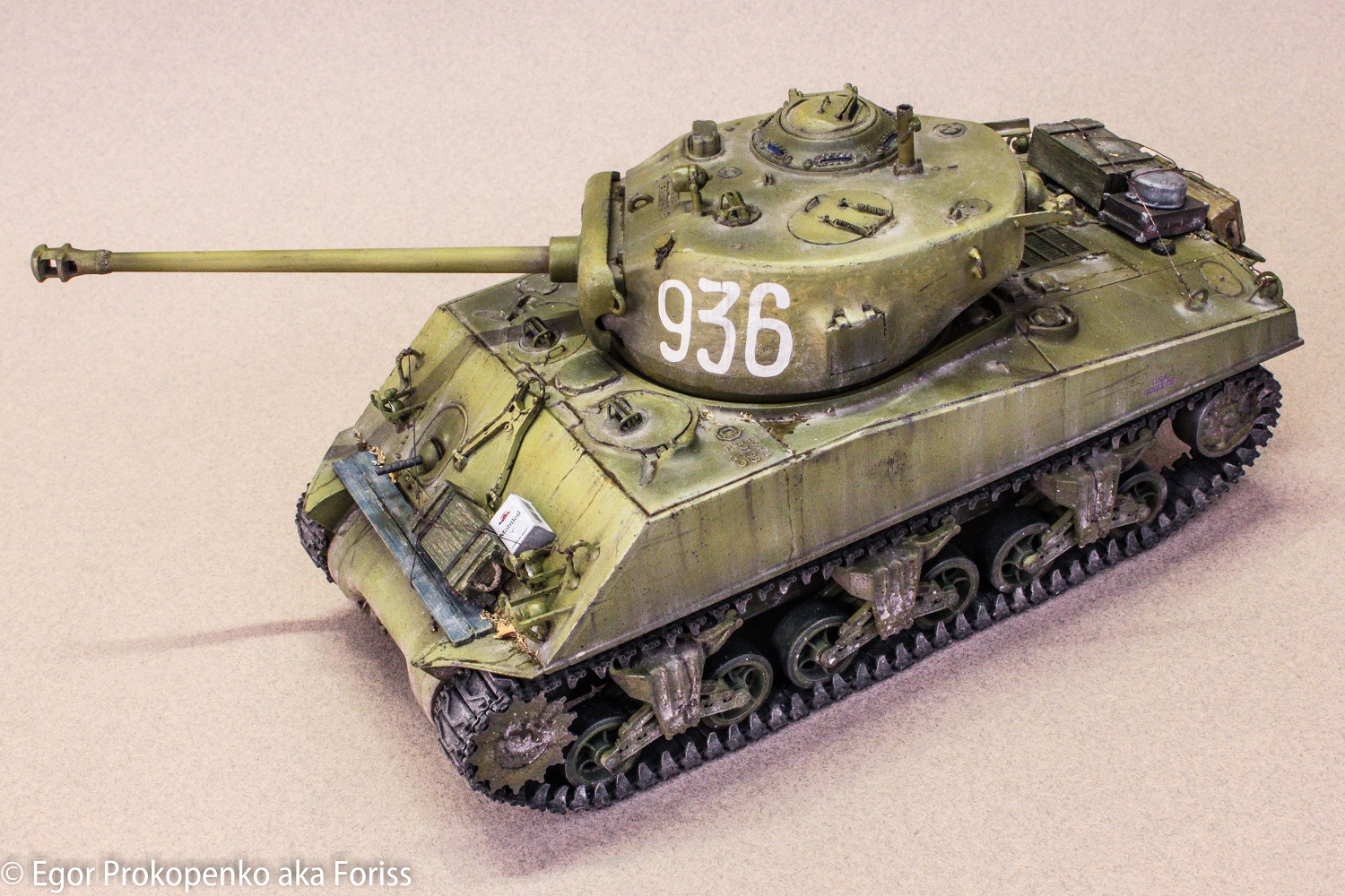 Как-то полюбились мне советские варианты не советской техники, поэтому представляю следующую модель – ленд-лизовский Шерман. В качестве вдохновения выбрал борт 936, 1-го Гвардейского механизированного танкового корпуса, 9-ой Гвардейской танковой бригады, Вена, 1945 год. Как обычно, цели полного соответствия танка конкретной фотографии и моменту нет, поэтому понимая, что танк существовал не один день, и фотографии передают лишь некоторые моменты его "жизни", добавил от себя различный скарб, который вполне мол присутствовать.