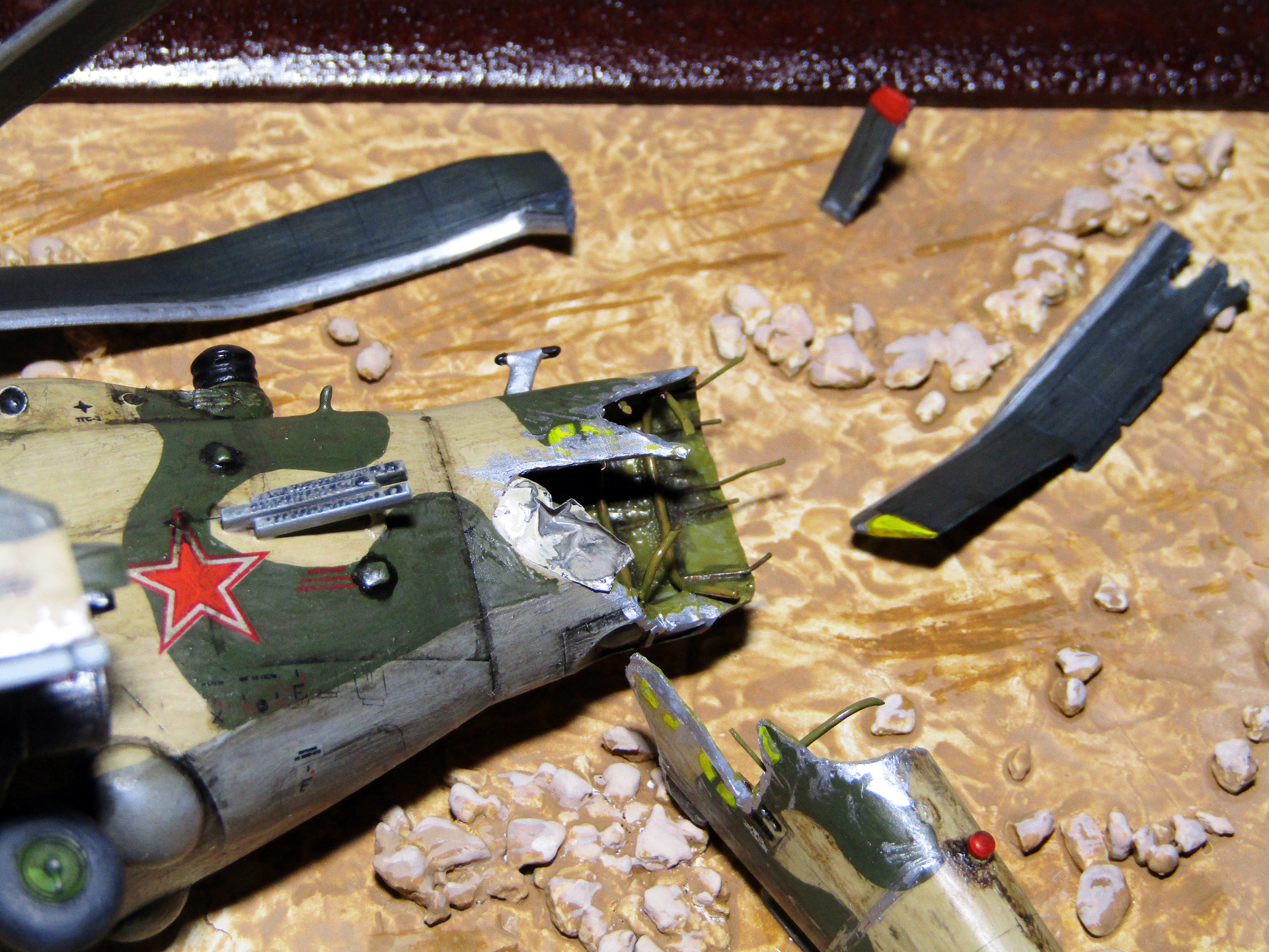 Да не такой уж и пыльный тот Афганистан (ну разве что в городах). Вертолет да, сломан как сломан. Но следует понимать, что автору надо было уместить возможно бОльшее количество обломков, на очень незначительной площади, да еще желательно знать причины возникновения таких аварий, а они возникают не в воздухе а на земле, при посадке "на одно колесо"