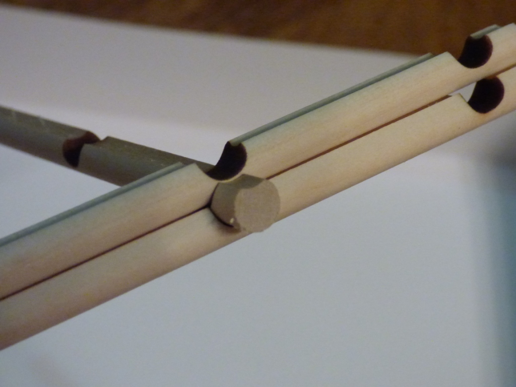 Теперь по материалу. Дерево очень хорошего качества и приятно пахнет (очередной привет китайцам). Шпон, рейки, бревна разрезаны четко. Волокна не лохматятся, скотов не обнаружено. Как в работе - сказать пока не могу, так как это мой первый набор этой фирмы. Но чисто визуально - намного лучше чем от Amati и OcCre.