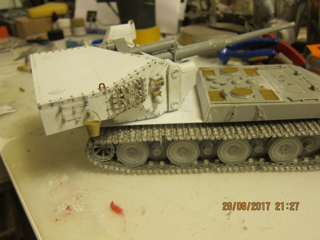 Опять же приложение База знаний для WoT, выставление примерных размеров исходя из 3D модели из приложения и соотношения с корпусом Е-100 1/35 и Flak 40, ну а HD детали исходя из внешних составляющих рендеров с сайта WoTExpress, сварные швы делал впервые, поэтому такой вот результат. Я, кстати, вашей вафлей и вдохновился, когда в середине лета запил ваш увидел.