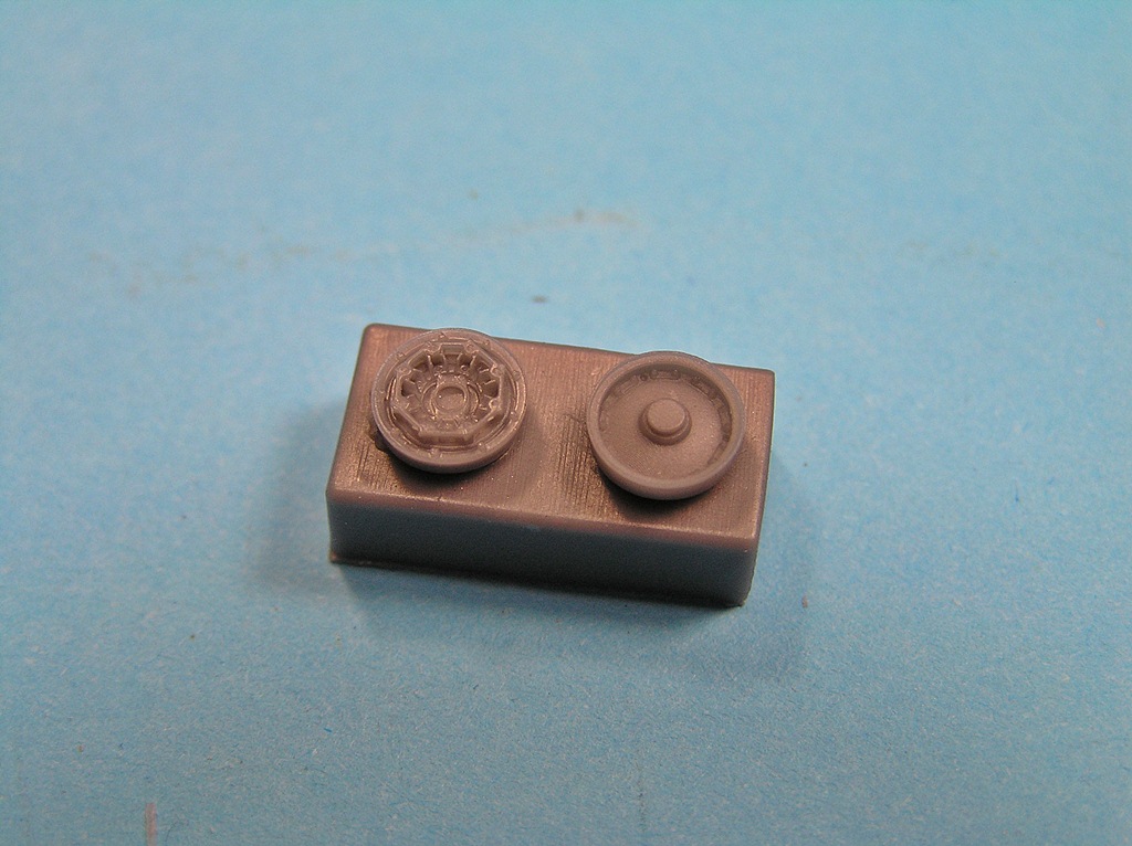 Диски основных колес и покрышки отлиты отдельными деталями. Носовое колесо отлито одной деталью.