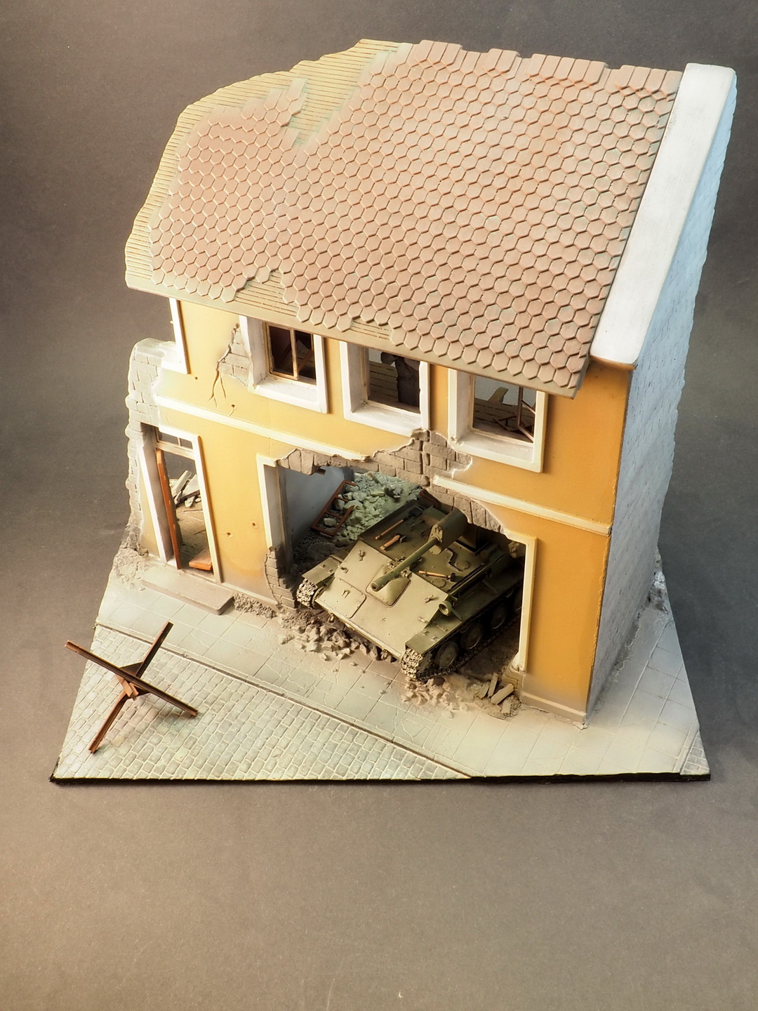В виду ограниченности сроков и недостатка свободного времени решил взять данный набор (36007), чтобы было, так сказать, "всё включено". Также использовал наборные траки для самоходки (35146) и мебель (35548) от того же MiniArt'а. От себя добавил лишь обломки из гипса.