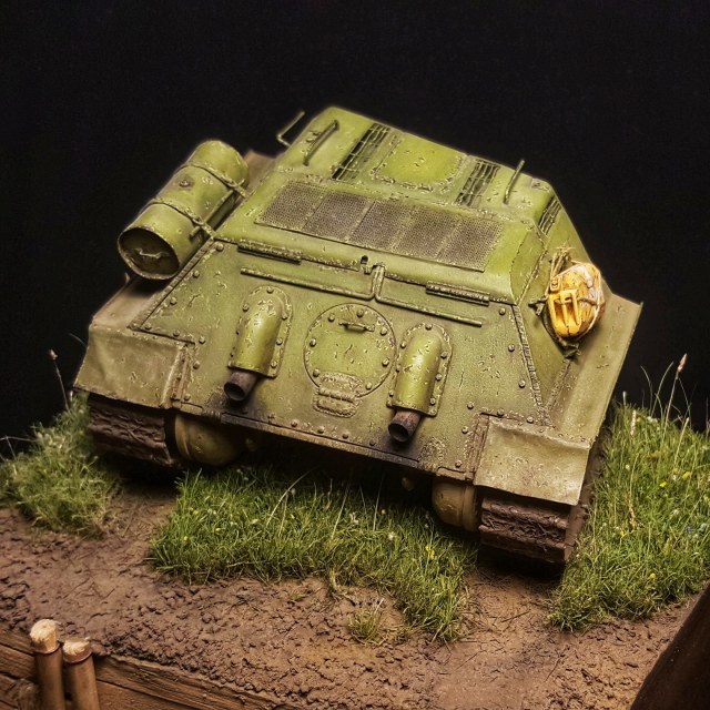 Первая, работа, выглядит весьма. Просто теперь нюансов с землей,пылью, травой, деревом добавить (также как сколы на броне.