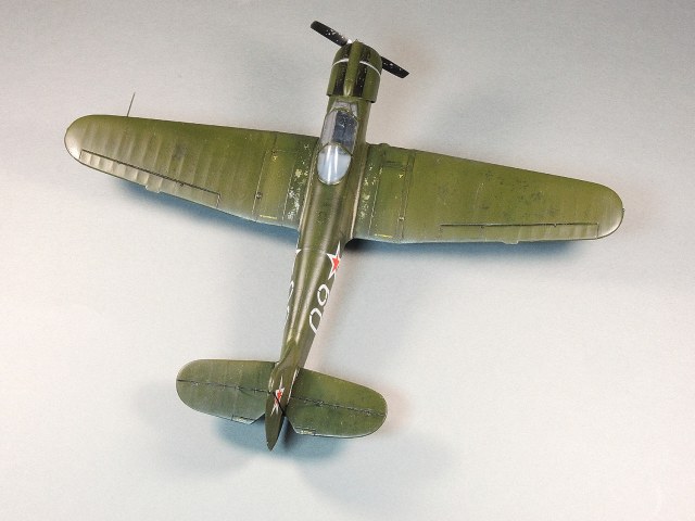 Даже не знаю, как идентифицировать этот аппарат? Какое то убожество. При чем один и тот же "самолет" играл и "советский ястребок" и "эрзац мессер". :-)