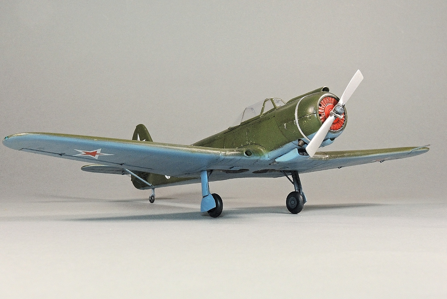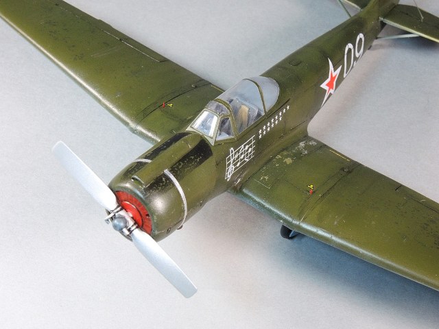 Всем добрый день! Представляю к просмотру модель самолета Як-18П, который снимался в фильме «В бой идут одни «старики»». Так сказать «киношный» самолет, не летающий. В 48-ом масштабе такую модель не делает никто. А вот в 72-ом масштабе делает Амодел. И именно Як-18П в варианте «Маэстро». Кроме этого они же делают Як-18П в двух вариантах, не киношный. Эти модели были у нас на Каропке в обзоре в августе 2015 г. и представлял их наш уважаемый SAURON. Модель собирал из двух наборов. Базовая - Як-18 от «МикроМира», а реципиентом стал Як-52 от «АРК Моделс». Материалом, которым пользовался при постройке модели, является статья (и чертежи) Сергея Комиссарова «Самолеты для воздушной акробатики», опубликованной в журнале АиВ за 2009 г. Вел стройку, но после того как на Каропке в июле месяце начались изменения, сами знаете какие, я потерял возможность со своего компьютера нормально цеплять фото к тексту, именно в «стройке». Администраторы подсказали обходной вариант. Но он сложный. Тем не менее, кружным путем я загрузил фотки через «Яндекс фото» и закончил стройку. Через некоторое время, чтобы не засорять ресурс «Яндекс фото» я удалил их от туда. Автоматически исчезли фотки и из моей стройки. Такая история. Но текст остался и прежние фото тоже. Поэтому, если кому интересно, как я собирал модель можно заглянуть по адресу. Коротко, что сделано. Переделано полностью крыло. Особенно его нижняя часть, так как у ЯК-18 стойки шасси убирались по полету, а Як-18П традиционно, как Як-3, например. Изменена площадь элеронов, некоторая расшивка и лючки крыла. Зашит гаргрот фюзеляжа под одноместную кабину летчика, изменен контур киля. Фонарь распилен из двухместного и сделан для одноместной кабины. Капот взят от Як-52. Стабилизатор полностью сделан из кусочков пластика, так как у Як-18 он не совпадает по количеству нервюр. Ну, а мелочи, думаю, сами увидите. Повторюсь, если кому интересны детали, можно заглянуть на «стройку», ну или отвечу на вопросы. В старании максимально сделать модель похожей на её киношный вариант, я допустил серьезную ошибку. Проглядел такой момент. Гаргрот за кабиной должен быть на модели на 1,5 мм выше и снижаться к килю. Получилось как в басне Крылова: «Слона-то я и не заметил…». Остается исправить со временем при наличии сил, а пока представляю модель с ошибкой. Каюсь…. Красил: верх мешанная Тамия, низ Акан. Лак от Тамии. Декали «Народная декаль» - хорошие, спасибо им и лично Георгию Сушкову. Также выражаю благодарность Дмитрию (croco007) за поддержку при постройке модели. Задача, которую перед собой ставил, сделать модель ПОХОЖЕЙ на ту, что снималась в кино, выполнена не полностью. При сборке модели ориентировался в основном на фото из фильма. Остальное судить Вам!