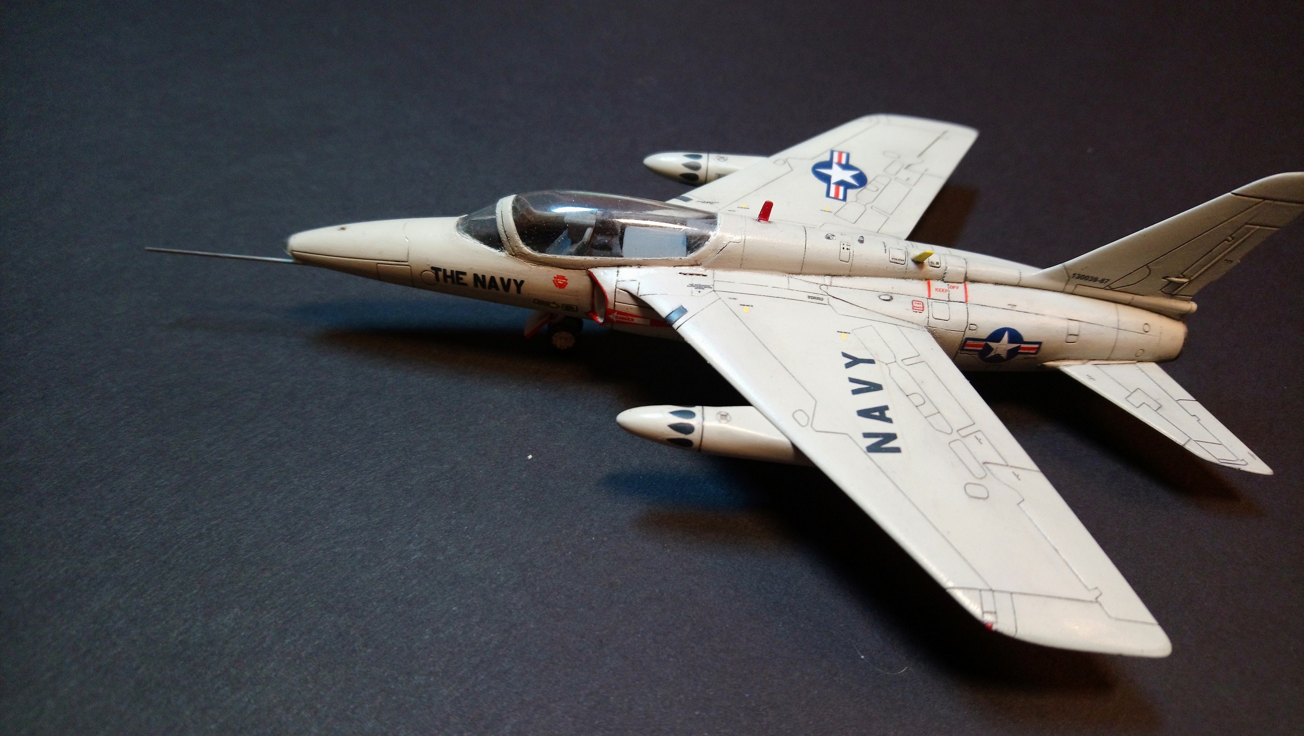 * Красил в Mr.Hobby H315 GRAY FS16440 - вроде как похож на основной цвет палубной авиации США. Краска выбесила - сохнет настолько долго, что не все пальчики удалось вовремя убрать