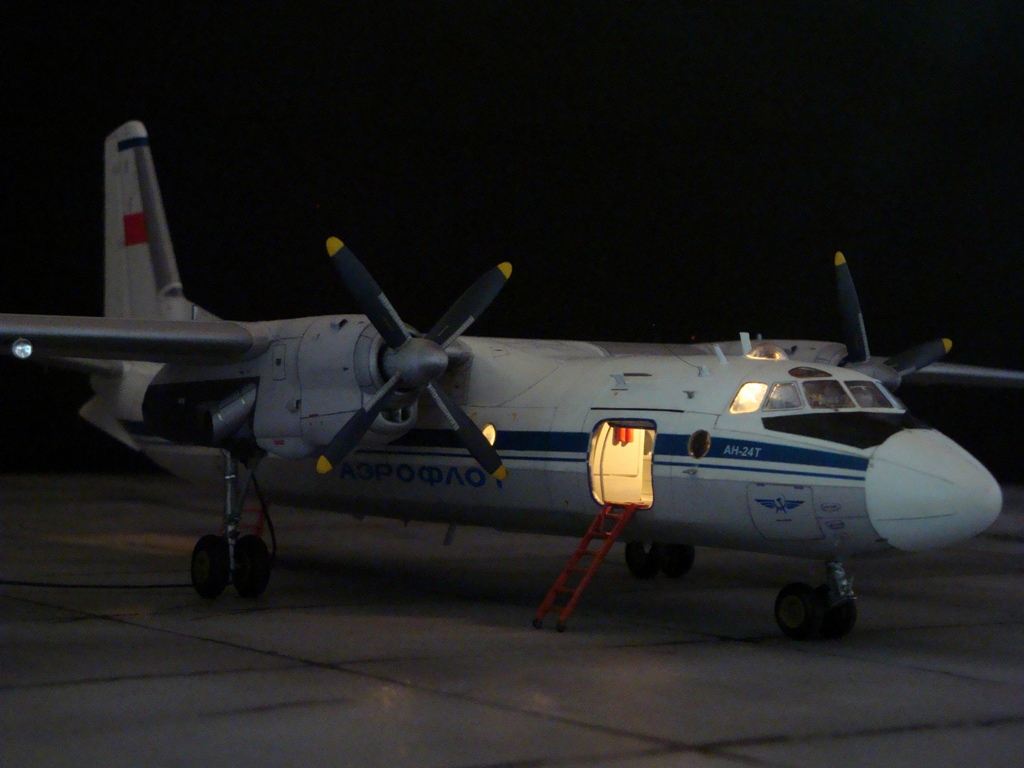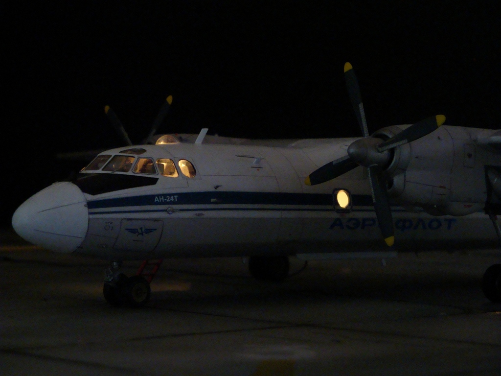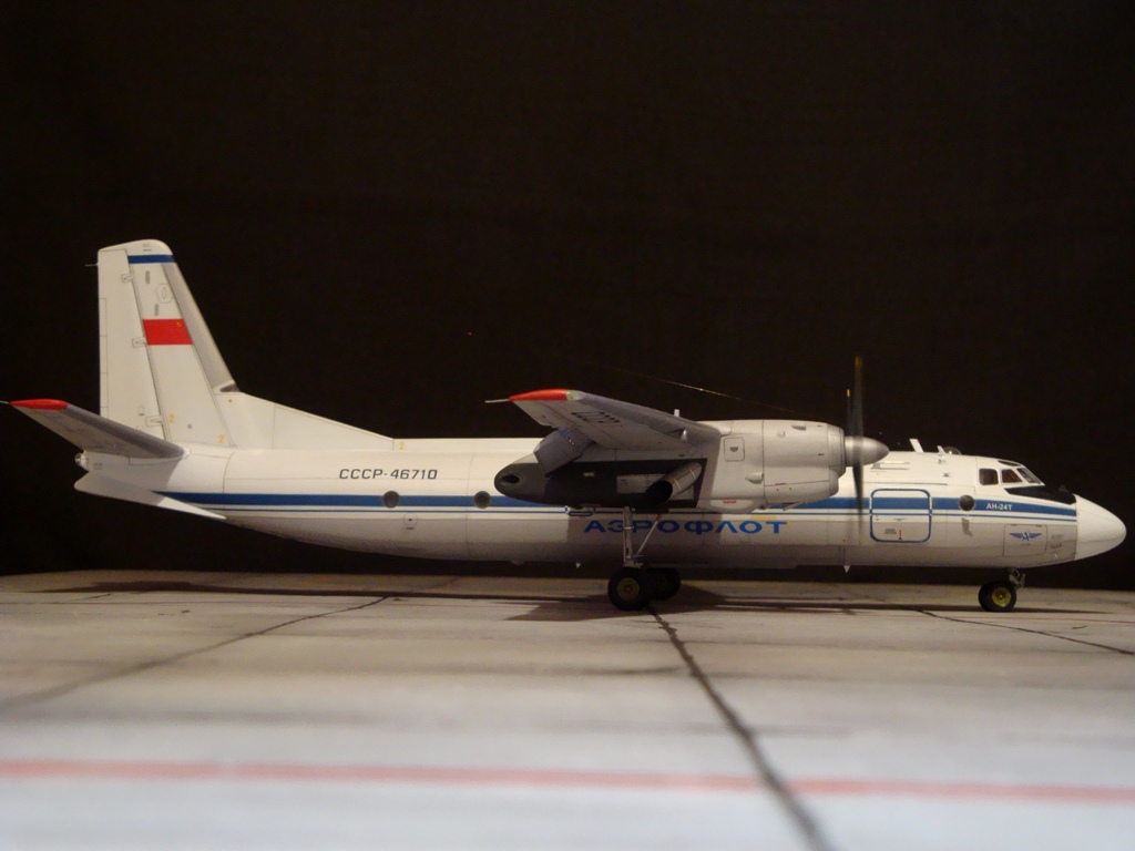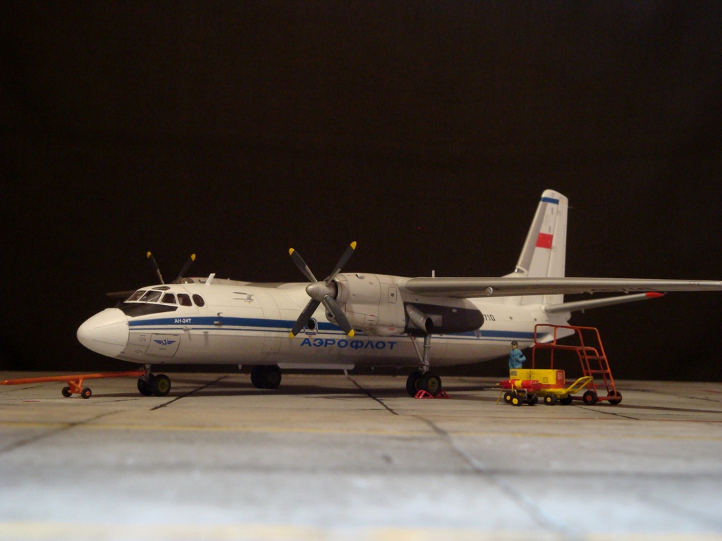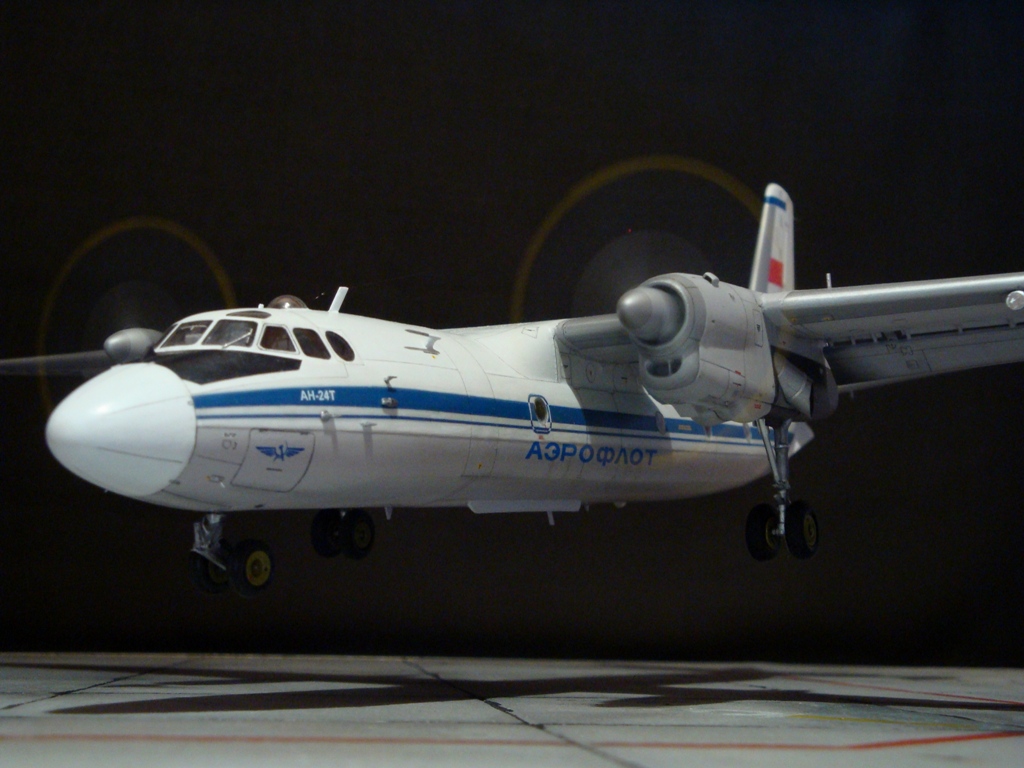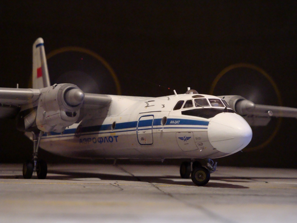Добрый вечер. Друзья, вашему вниманию Ан-24Т. Прекрасный аппарат, хотя и не имел такой славы как его пассажирский собрат. Тем не менее машина оставила свой след в авиации. Летающих на сегодня бортов осталось, наверное, несколько единиц, вот этим единицам и посвящаю эту работу. Посвящать во все прелести «Амоделовкой» сборки не стану. Модель сделана на заказ.