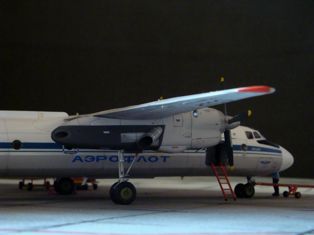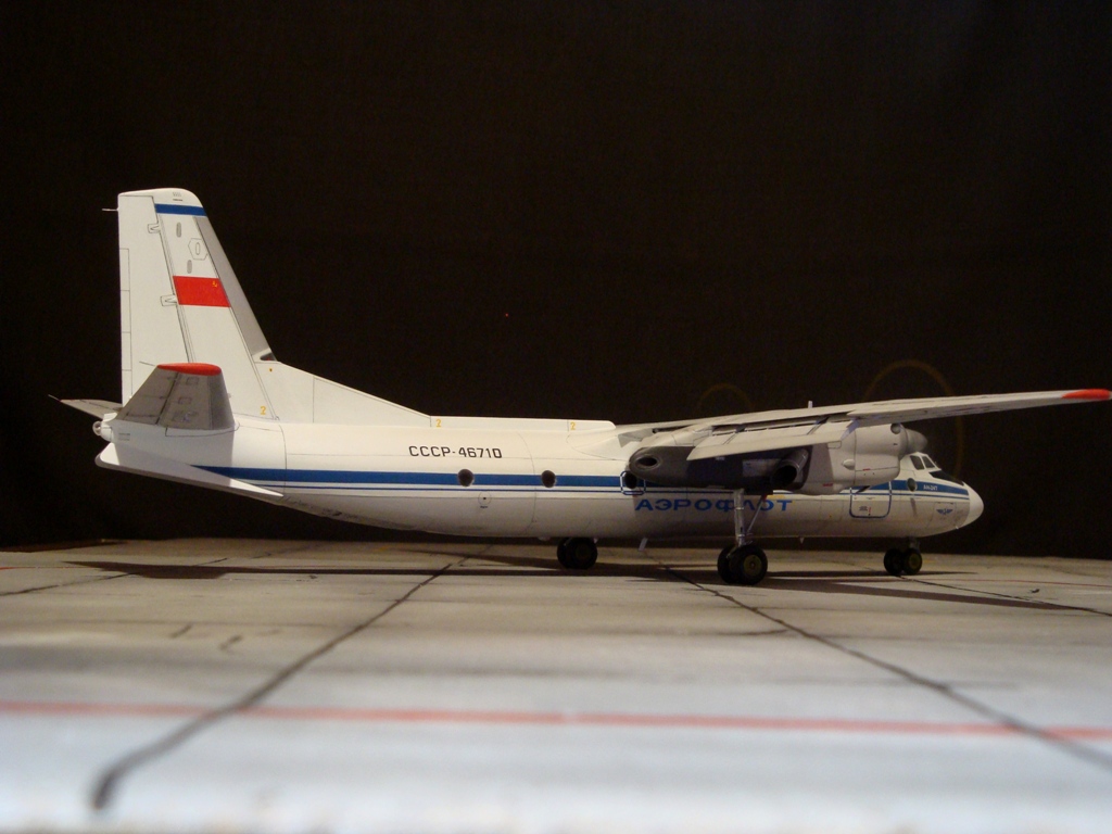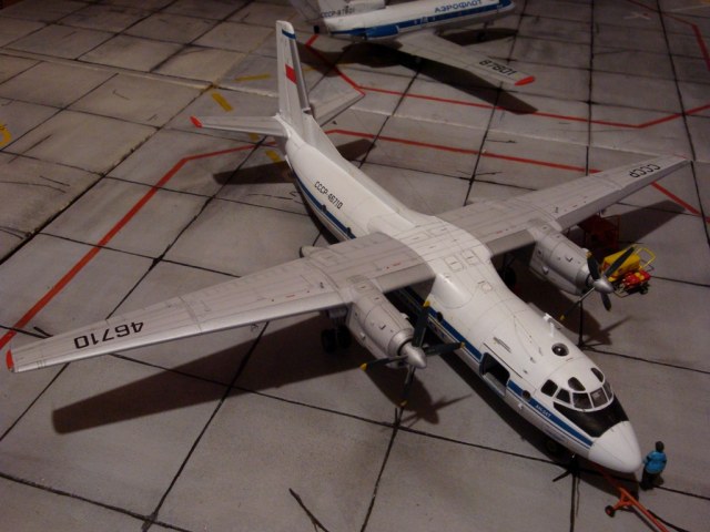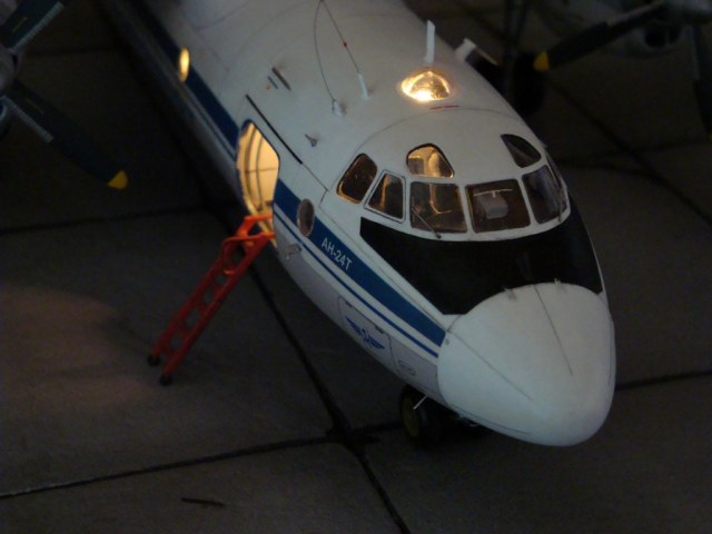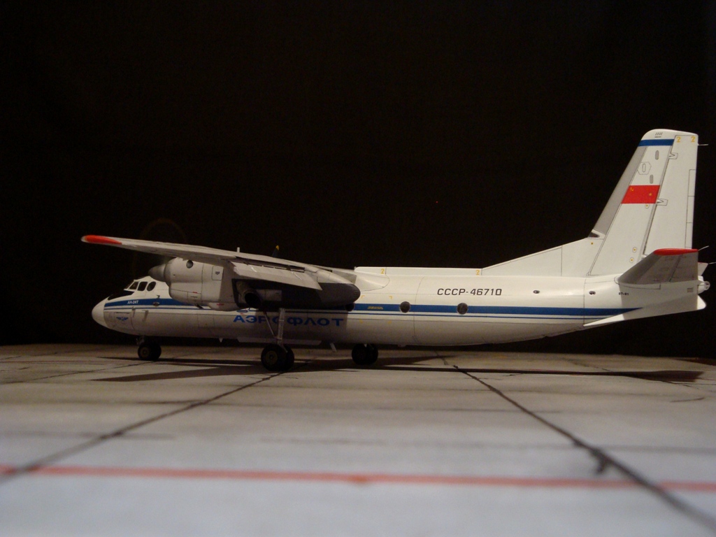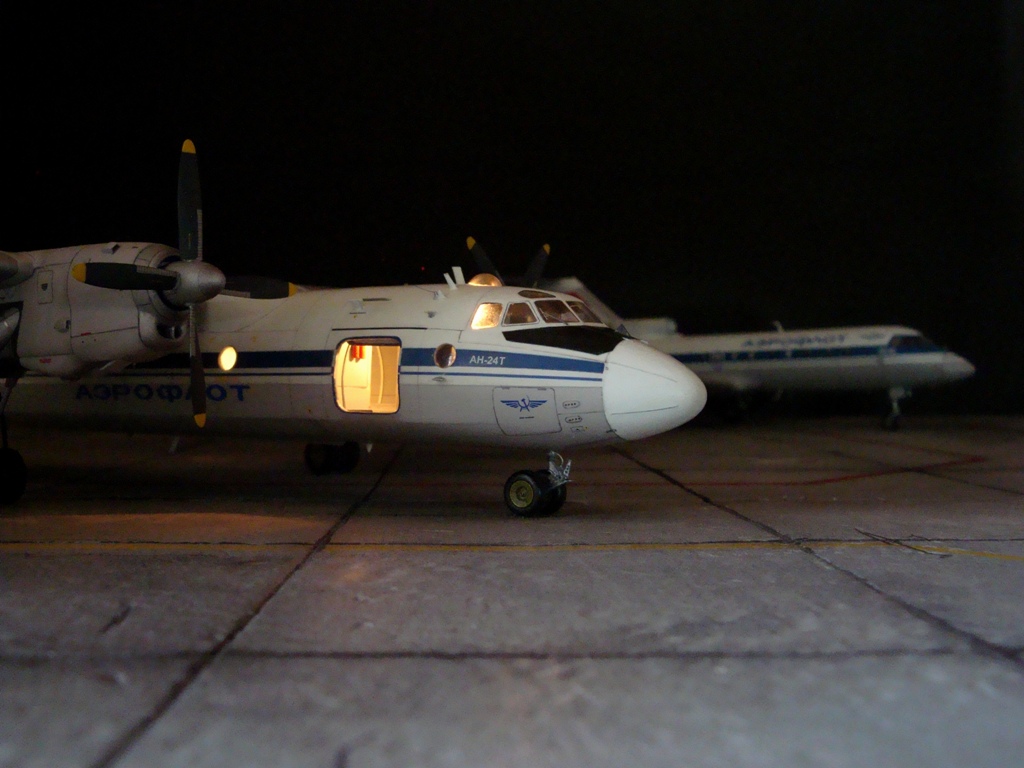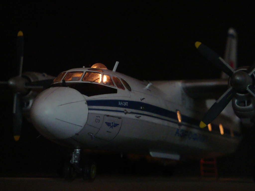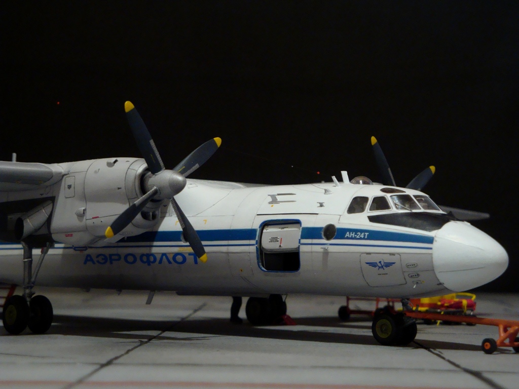 Добрый вечер. Друзья, вашему вниманию Ан-24Т. Прекрасный аппарат, хотя и не имел такой славы как его пассажирский собрат. Тем не менее машина оставила свой след в авиации. Летающих на сегодня бортов осталось, наверное, несколько единиц, вот этим единицам и посвящаю эту работу. Посвящать во все прелести «Амоделовкой» сборки не стану. Модель сделана на заказ.