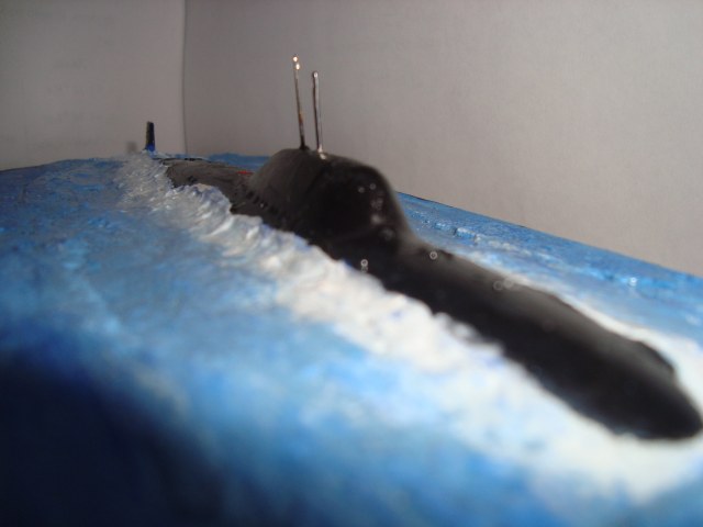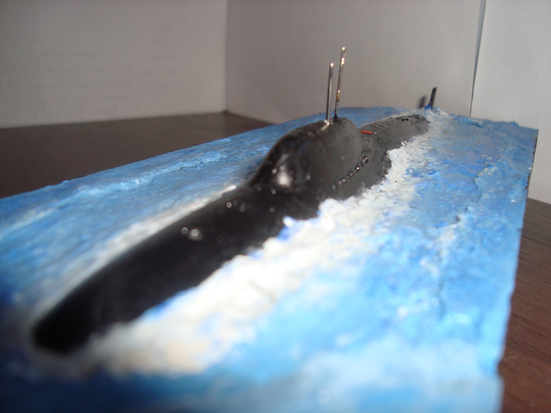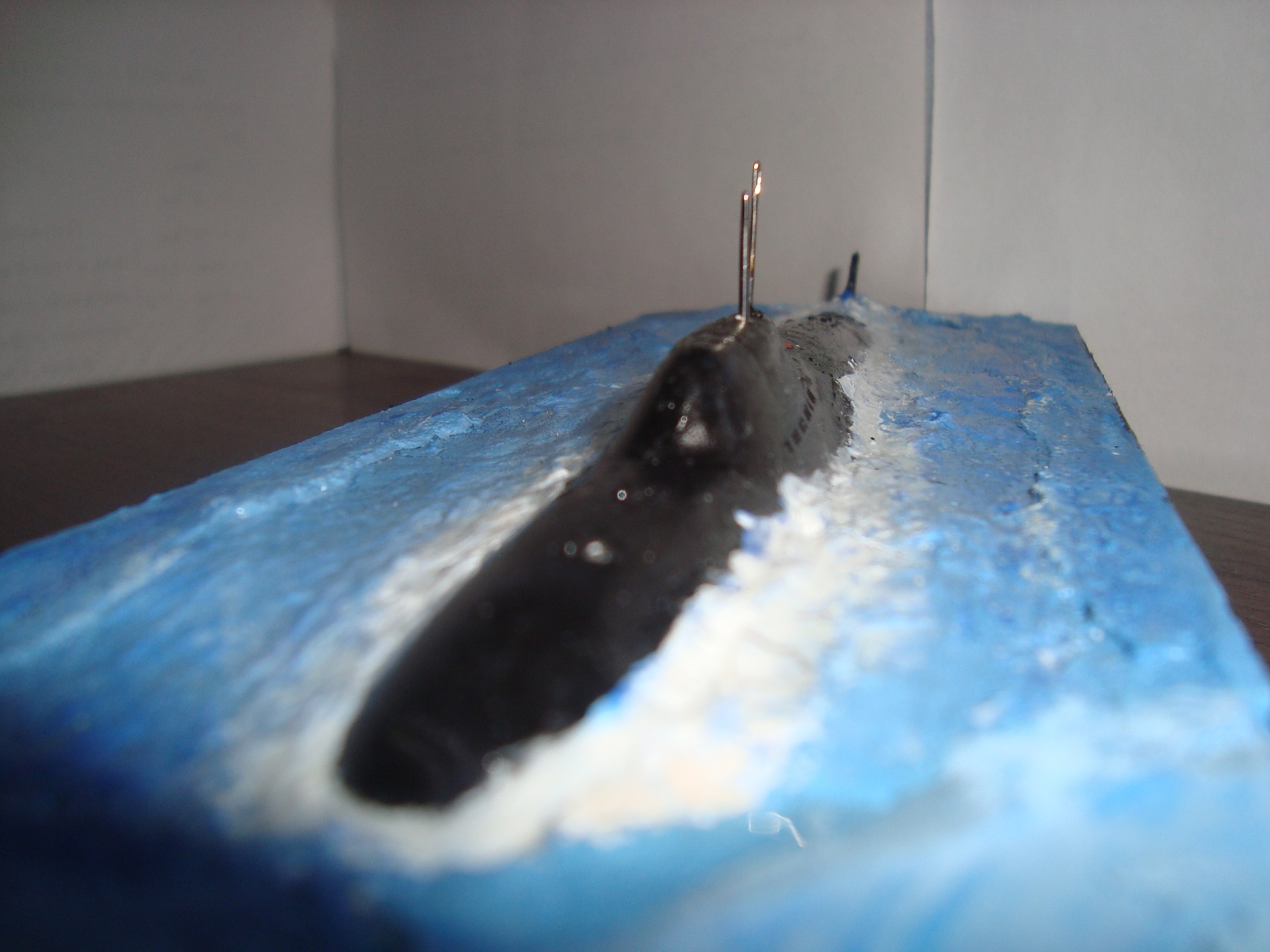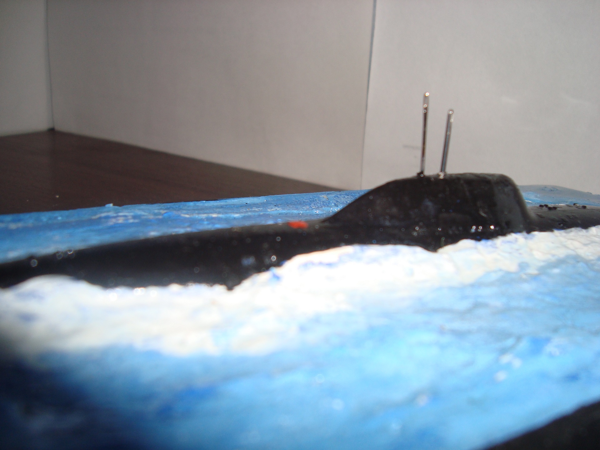 Приветствую Сергей! Теперь похоже на диораму. На песочницу точно потянет, но можно попробоваться в галерею. Качество некоторых фотографий не очень хорошее, попробуйте переснять и добавить. Фон из белых бумаг лучше чем обои, но может найдете получше вариант фона. От просмотра фото такое впечатление что перископы смотрят в разные стороны. Либо это эффект от фото. Оставить угольные ушки не очень хорошая идея, смотрится по детски. Пластиковые перископы можно заменить иголками от шприцов или проволокой. А их навершие сделать из подручных материалов, остатков литника. Удачи.