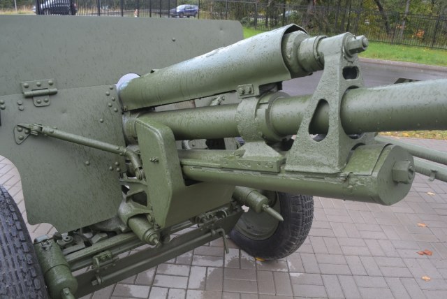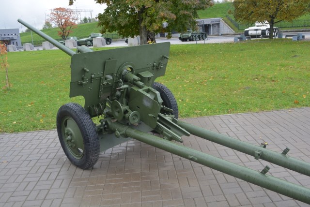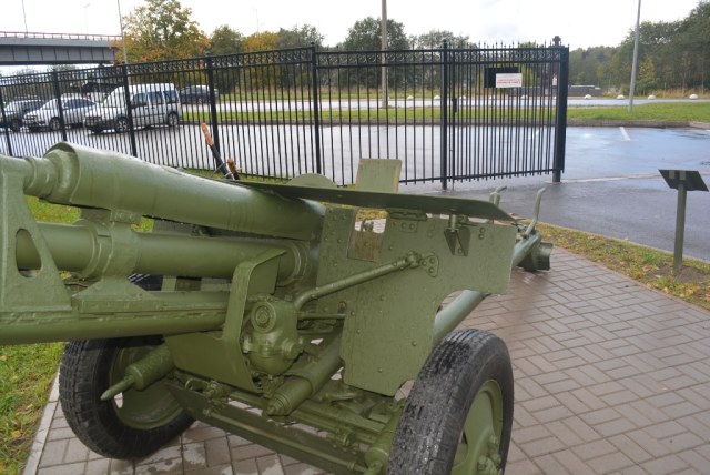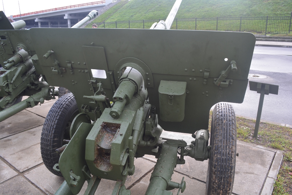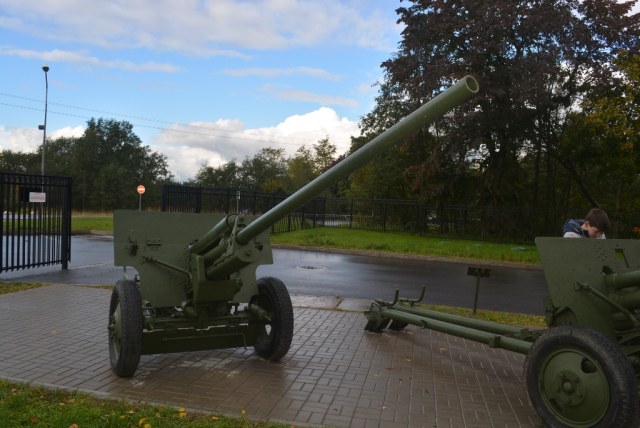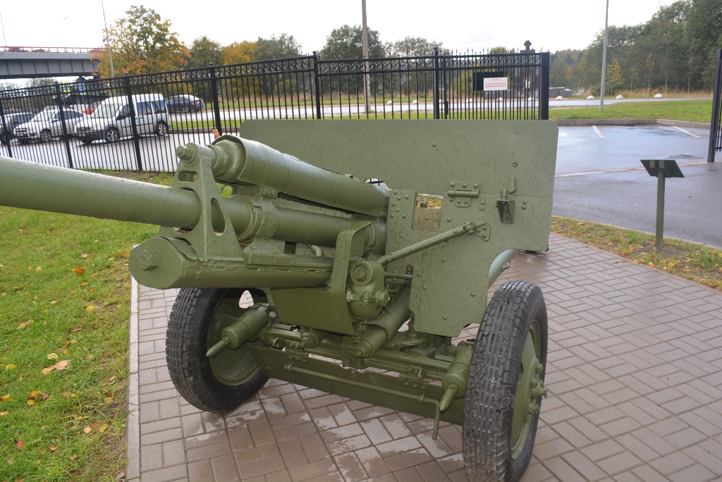 ЗИС-2 57 мм- противотанковое орудие.Располодено в Ленинградской области, на территории музея-заповедника Прорыв блокады Ленинграда.