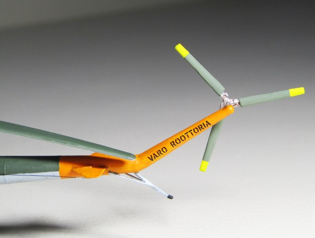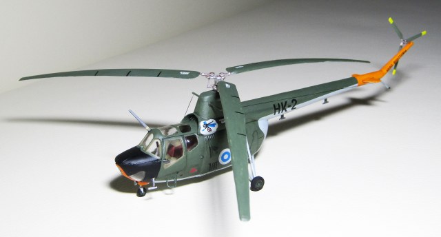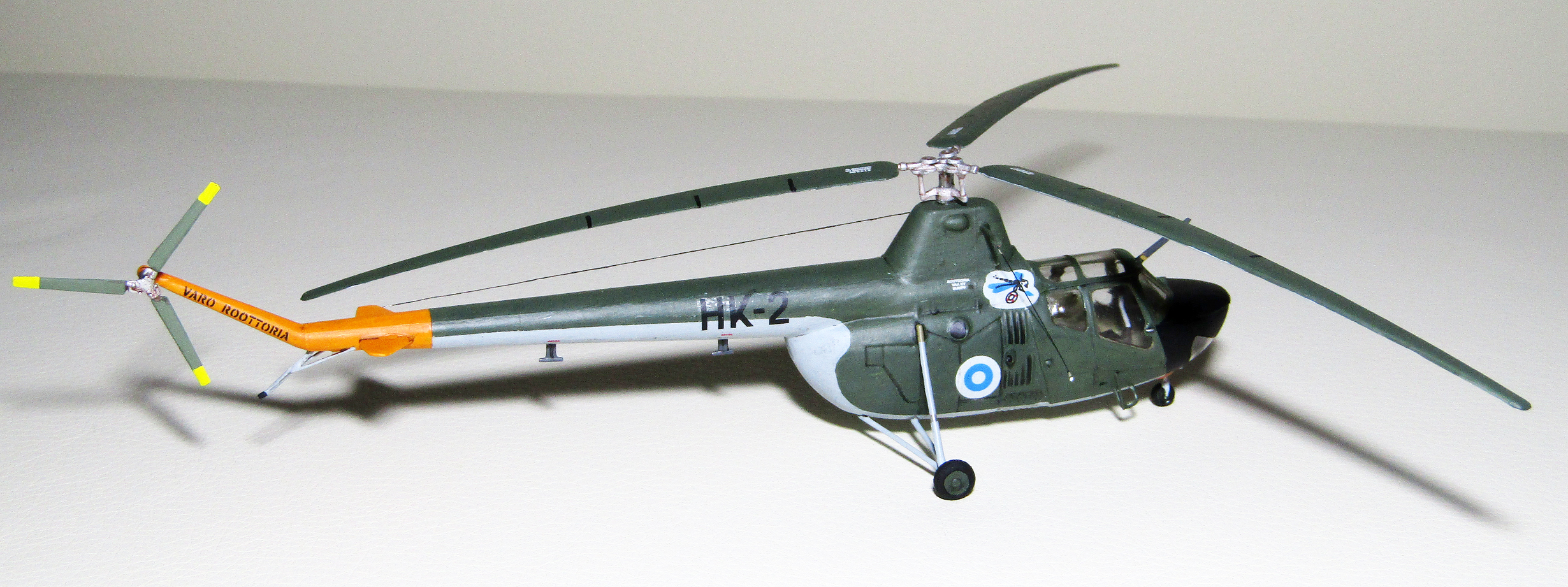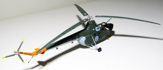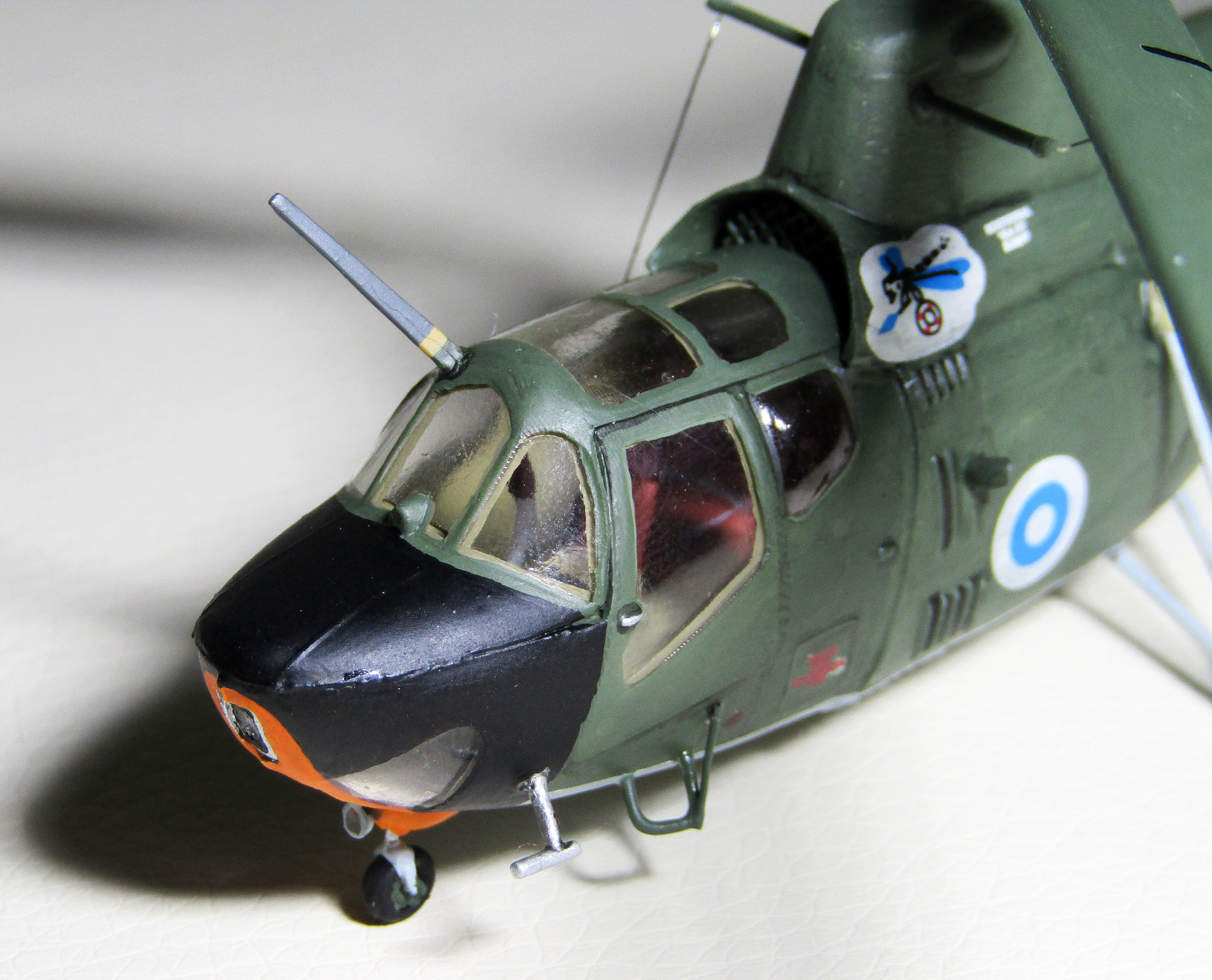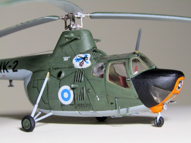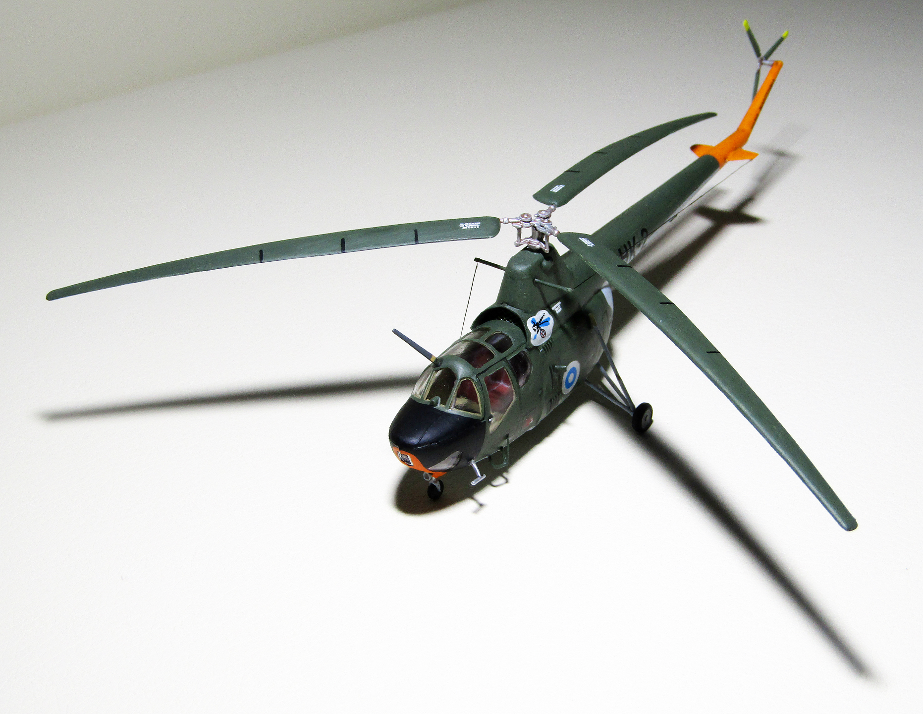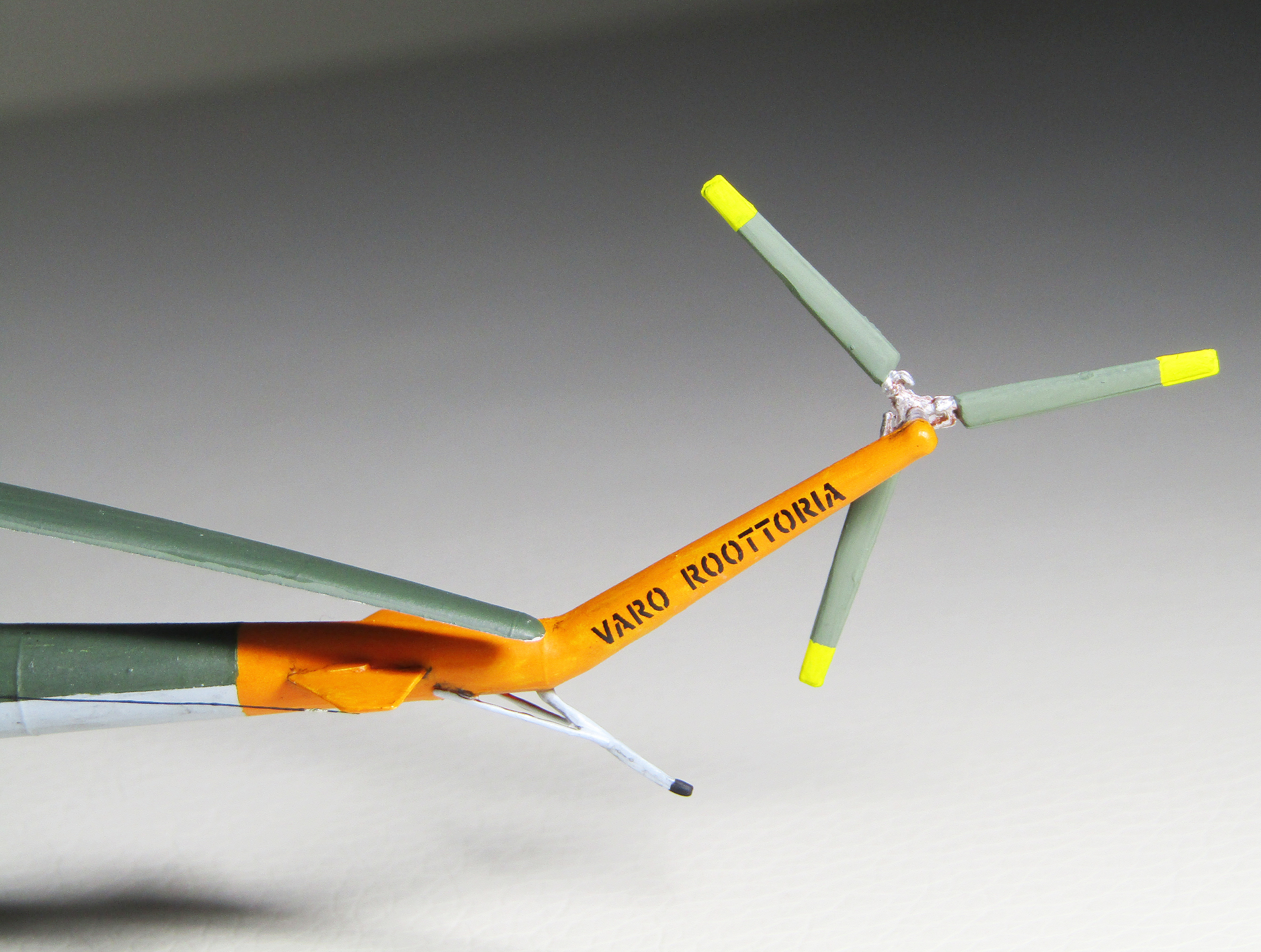 изготовил посадочную фару перед передней стойкой шасси. Грунтовал корпус аэрозолью "Kudo", красил кистью жидко разведённой эмалью от revell и звездовскими акрилами, оранжевые участки ПВА темперой ввиду свойственных ей "ярких свойств". Перед наклейкой декалей покрывал звездовским глянцевым лаком, после смывал акварелью, ну а затем матовой 2-й от revell. Цветовую схему использовал коробочную (как я понял это Егерская парашютная школа, сформированная в 1961 году) от производителя, также использовал фотографии отдельных элементов музейного экспоната польского вертолёта pzl sm-1, который находится в музее авиации города Вантаа в Финляндии. От коробочной отличаются они количеством оранжевой краски на носу вертолёта, ну и бортовым номером (HK-2, а не HK-1). В общем, работа заняла около 2-х недель и доставила только удовольствие. Приятного просмотра коллеги....