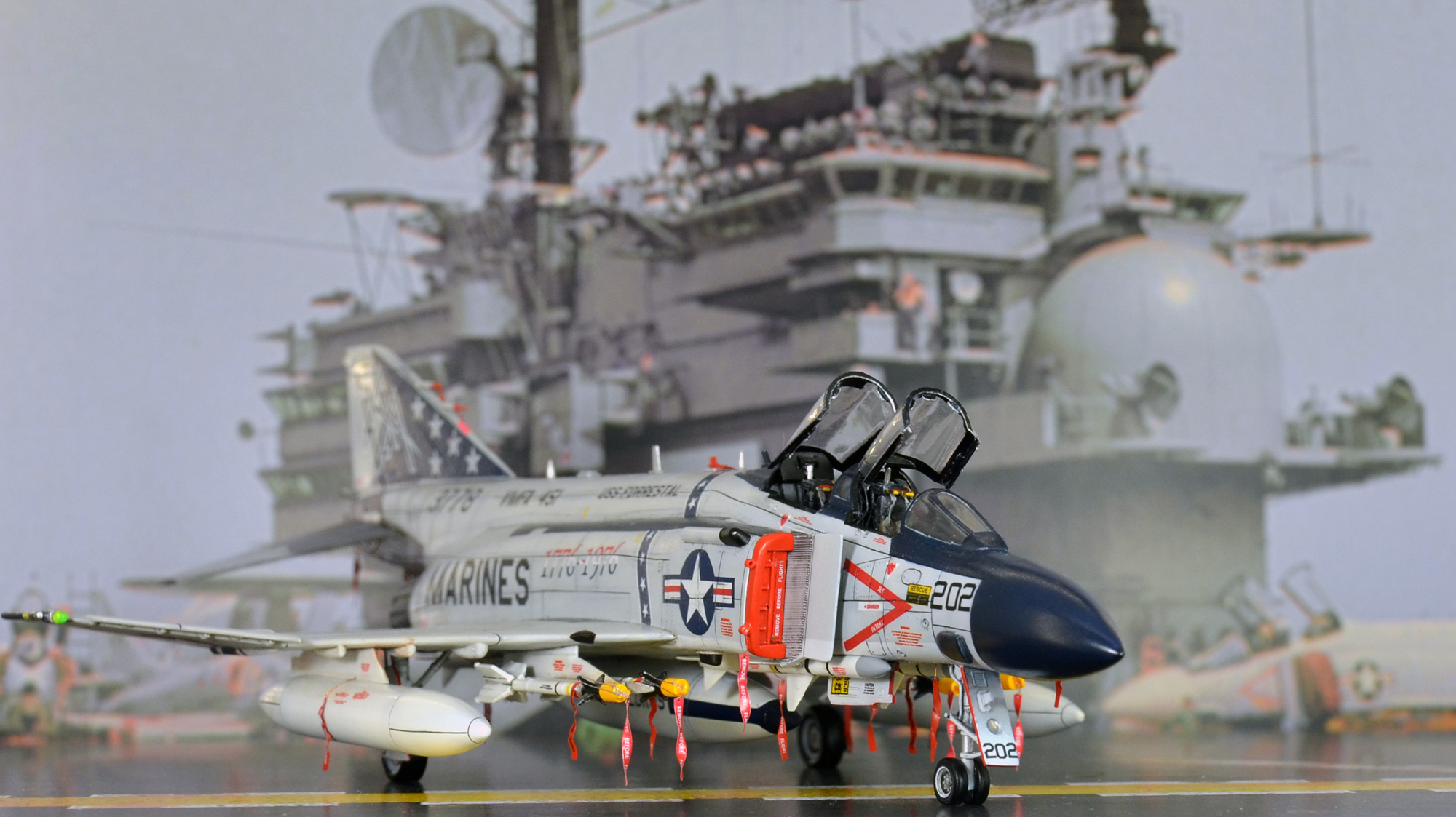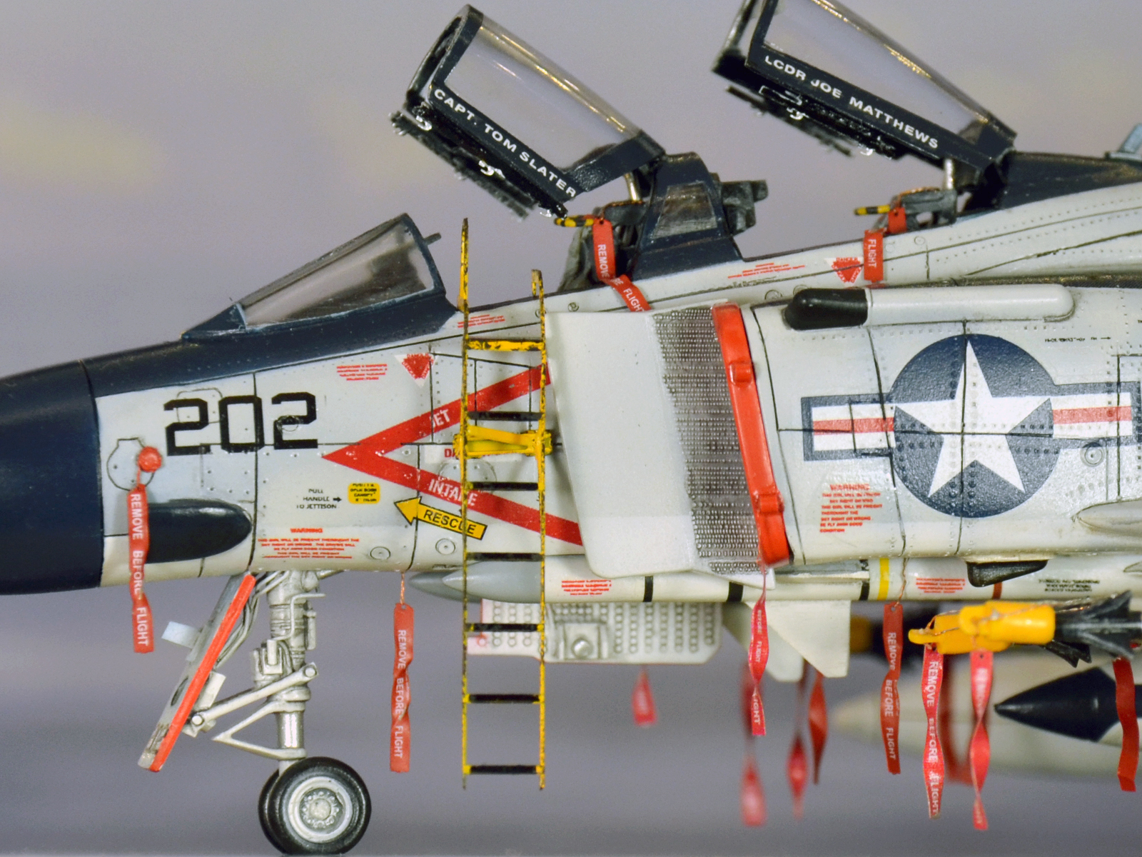 Теперь о модели. Это старенький Италловский NAVI PHANTOM F-4S. Модель слабенькая, расшивка внешняя, скудная и неправильная. Деталировка небогатая. Но под роскошную декаль фирмы PrintScaleпришлось модель немного подтянуть до подобающего качества.