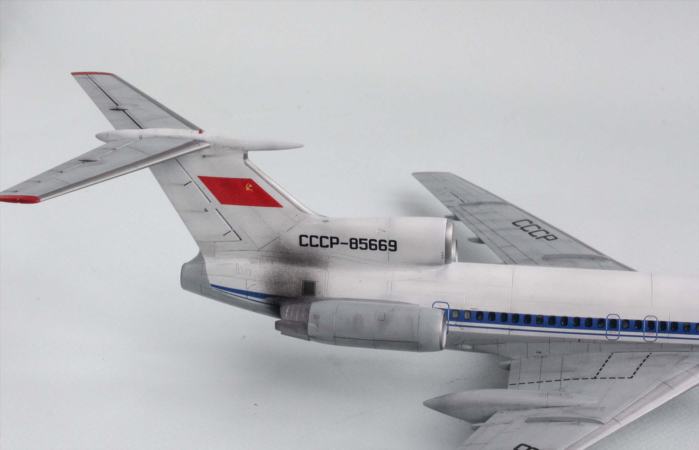 Придирка №2: Прекрасная смывка и ужасное, зернистое "копчение" хвоста от реверсов. Угольной пудрой надо, а не из аэрографа.