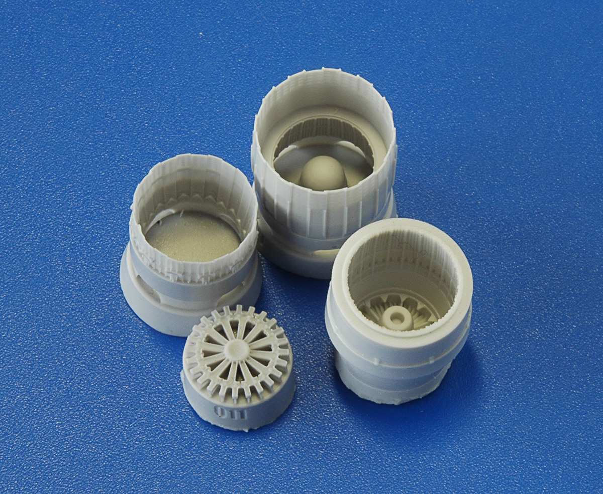 Что касается набора, по сути, это половинка набора AMG 72011 Реактивное сопло двигателя РД-33 (Миг-29) 1/72 (обзор:http://karopka.ru/community/user/9176/?MODEL=446972).