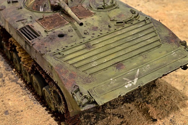 Так же все БМП-1 прошли не один капремонт, а значит на кормовых баках должны появиться горизонтальные накладные пластины, в том месте где ее в корму точно такая же БМП бить будет.