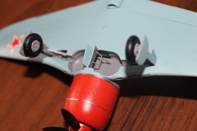 Согласен со сказанным. Передел всегда не простое дело. В целом похож на Ла-7. Получается конверсия, так как в готовом виде "Звезда" не делает Ла-7. А вот створки шасси у Ла-7 другой конфигурации. Вы взяли от Ла-5. Раз уж переделали ниши шасси, надо было и створкам уделить внимание.