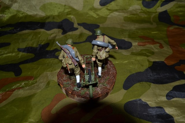 Из пенопласта ИМХО, кто-то делает из строительной пены. Много есть вариантов... Ко всему выше сказанному, добавлю, что ваши пулеметчики ствол пулемета потеряли пока тащили его))) А если серьезно, то повнимательней в сборке.