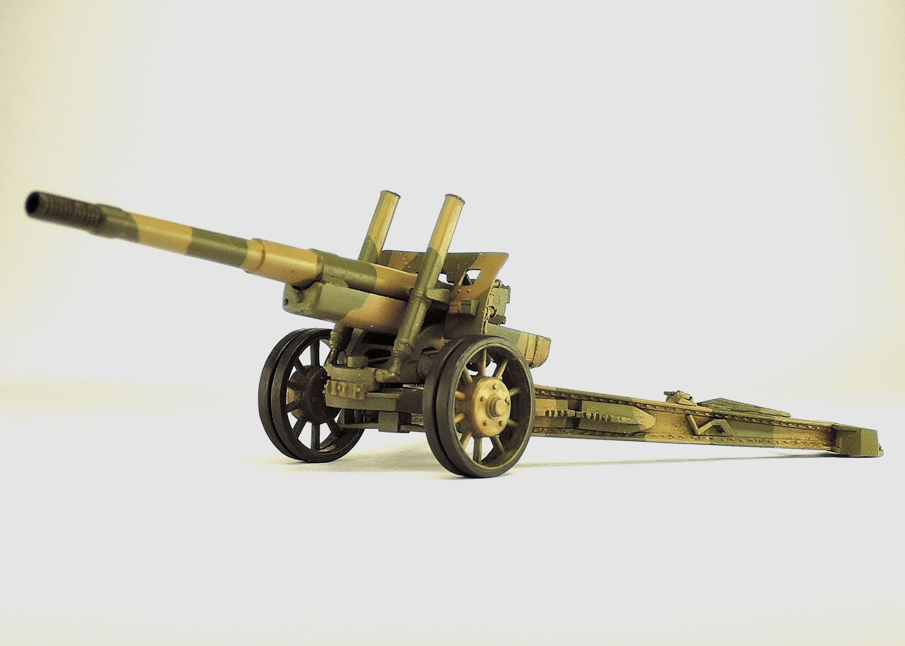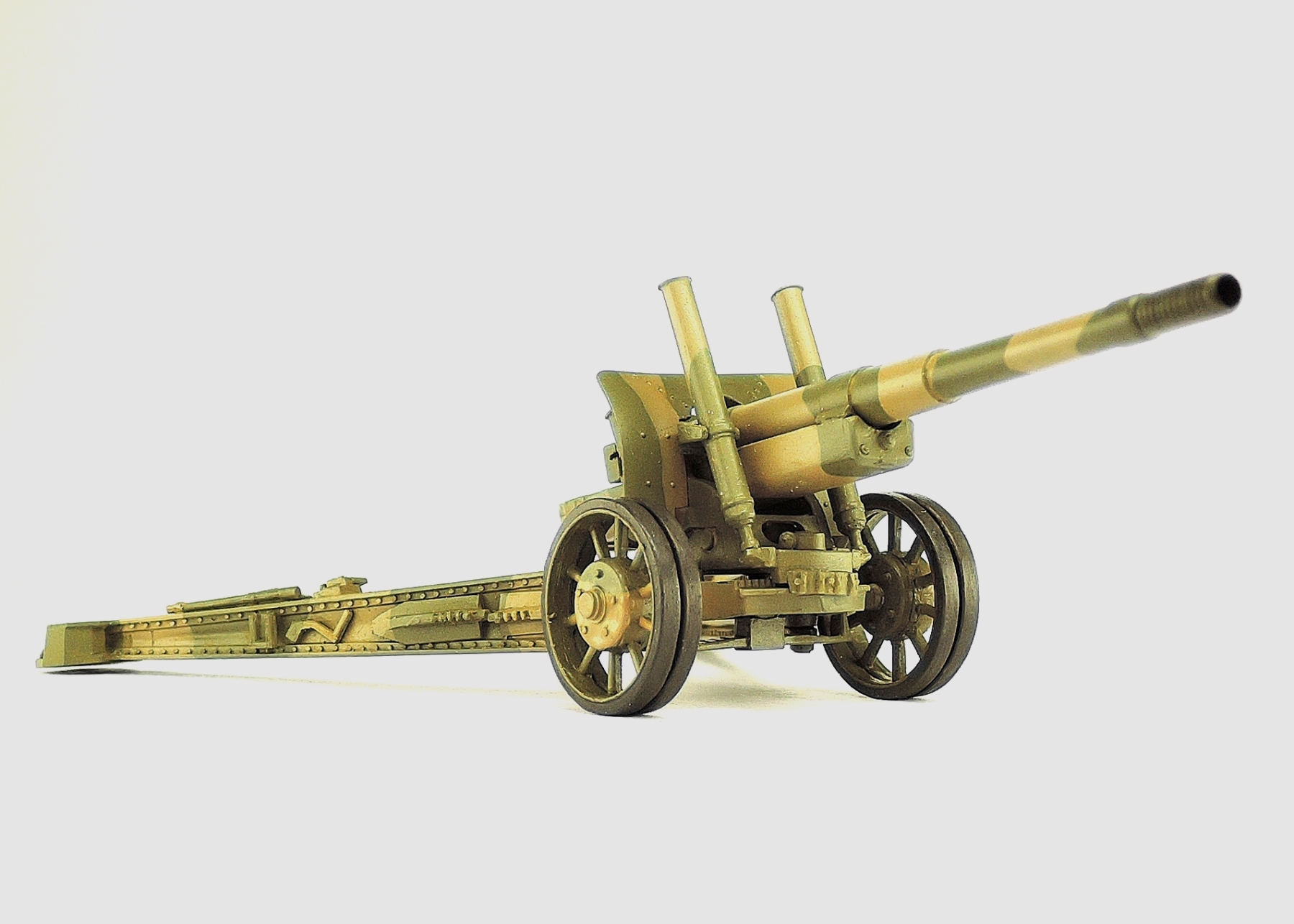 При сборке потребовалось много времени для выпиливания деталей из облоя. Изначально щиток орудия имеет большую толщину. После приведения этой толщины к нормальному виду восстановлена наружная клёпка. Окраска Акан.