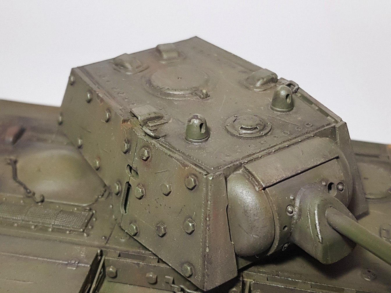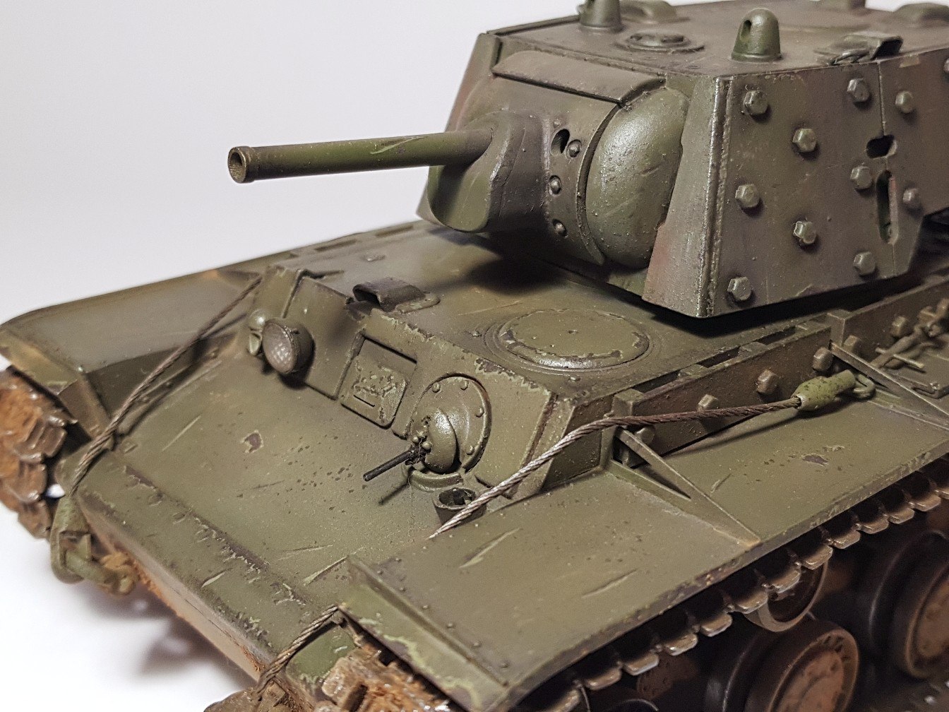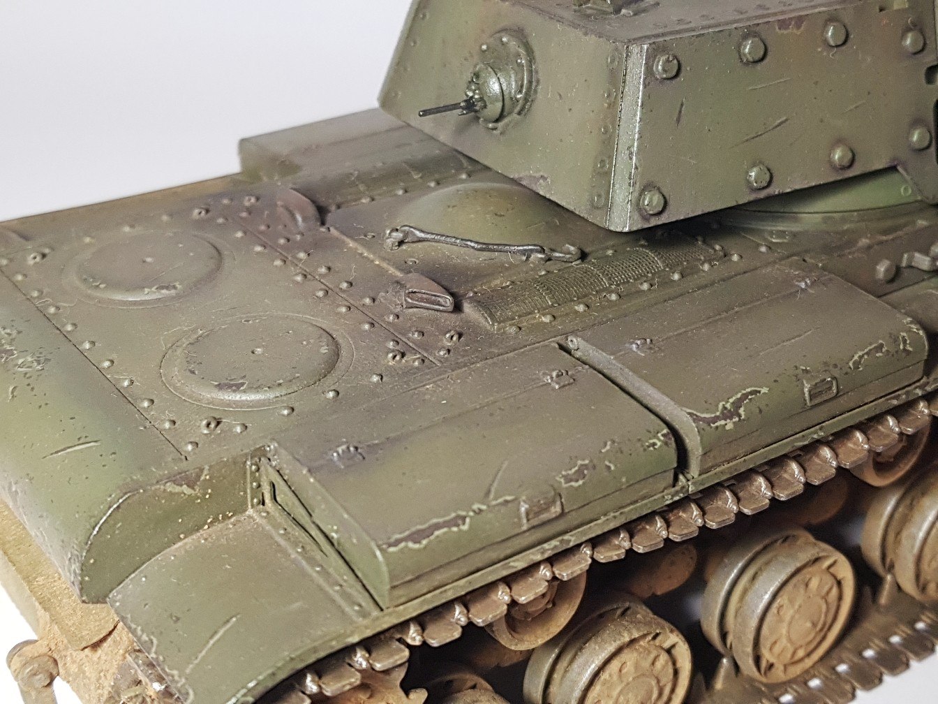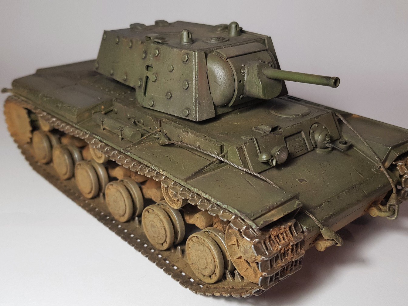 Доброго времени суток. Выкладываю свой переделанный КВ-1 который ранее был очень неудачно окрашен. На этот раз получилось лучше. В качестве основной краски применял aero pacific88, вся химия была от Wilder (смывка, эффекты). Также применял масляные краски для имитации погодных эффектов. Также впервые для себя делал не прешейдинг, а высветление более светлым тоном краски.