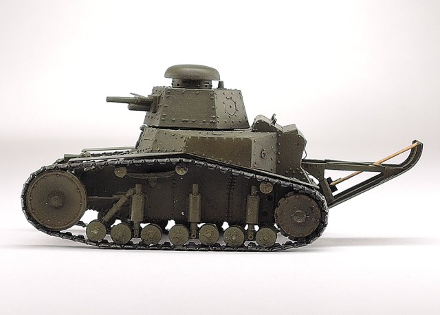 Исходный набор содержит смоляные детали и плату фототравления. Наибольшую сложность составляет сборка ходовой части, состоящей из очень мелких деталей (при этом в наборе не даётся запасных). Модель дополнена воздузаборником, поручнем, фарой и звуковым сигналом. Окраска Акан.