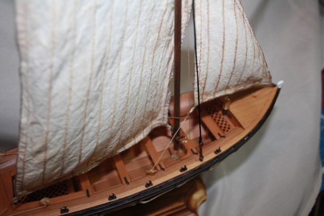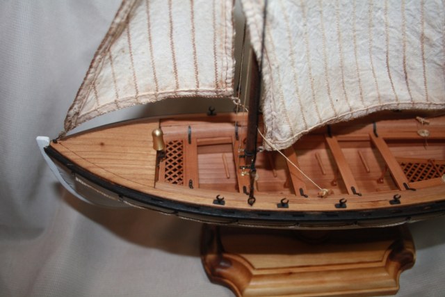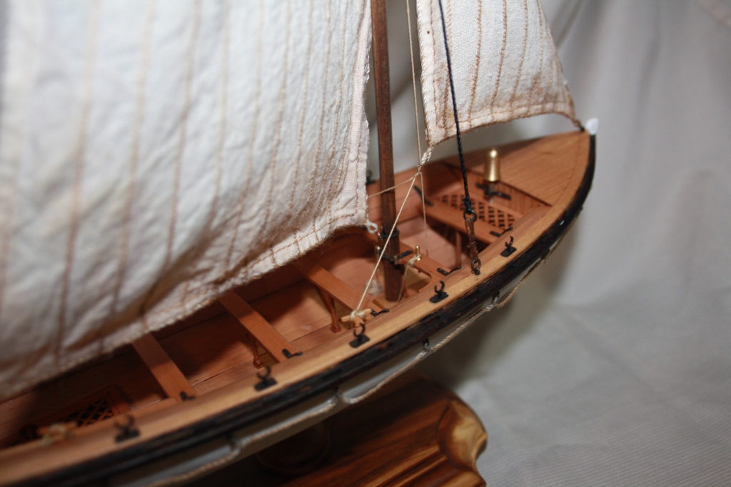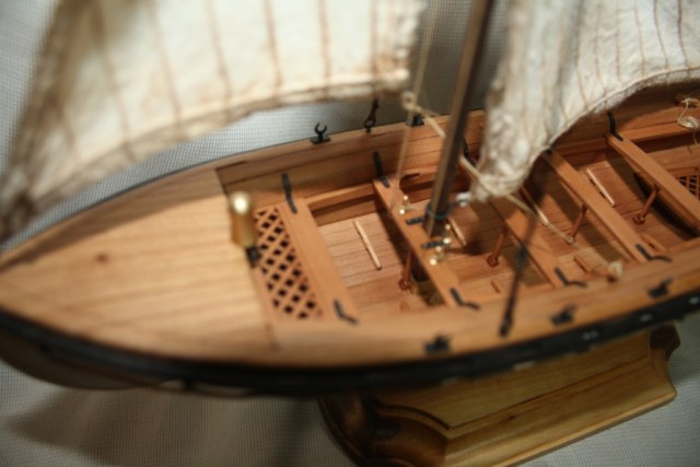 В основном, работа неплохая. Только я не совсем понял как навешивается перо руля на ахтерштевень? Обшивка должна входить в пазы в штевнях и киле, а у Вас она явно торчит, что в корне не верно. Спасательный леер не в масштабе, да и нить лучше было бы заменить. В целом, повторюсь, неплохо. Галерея.