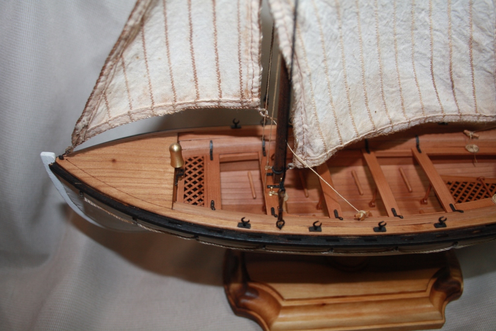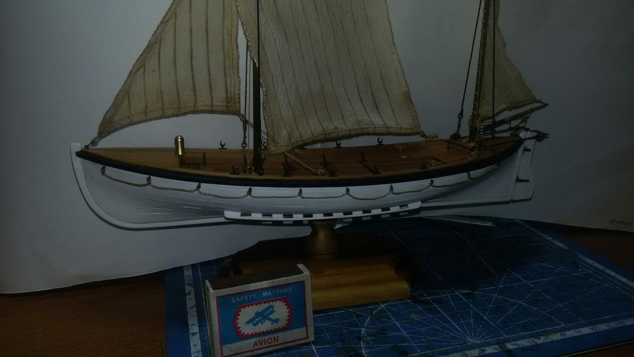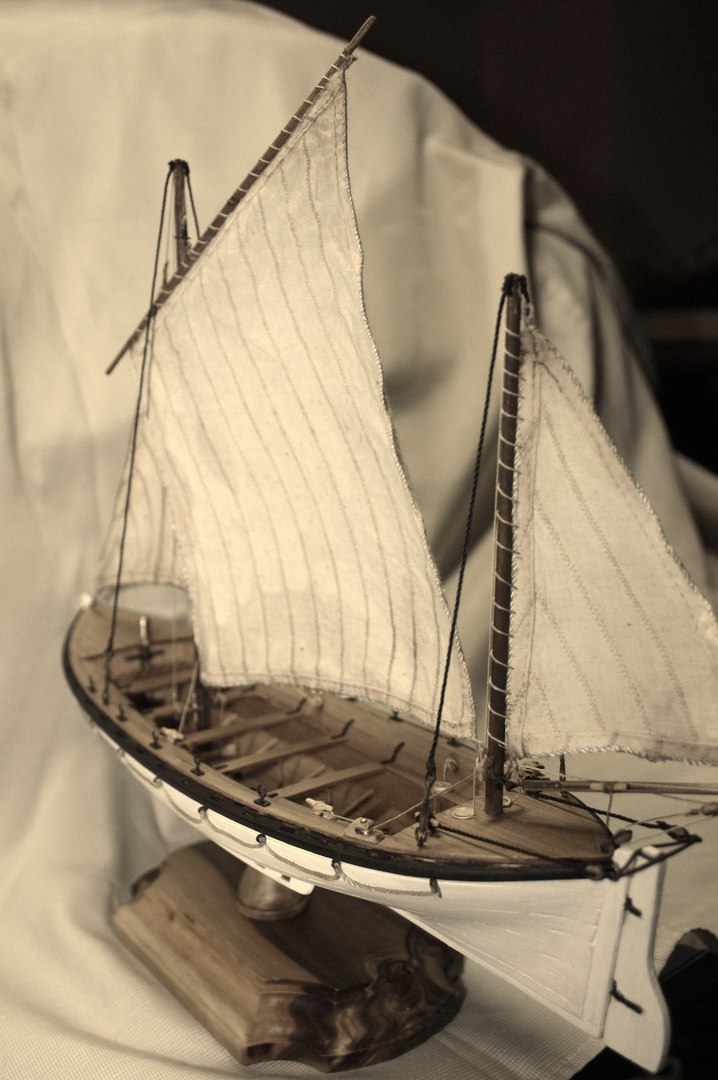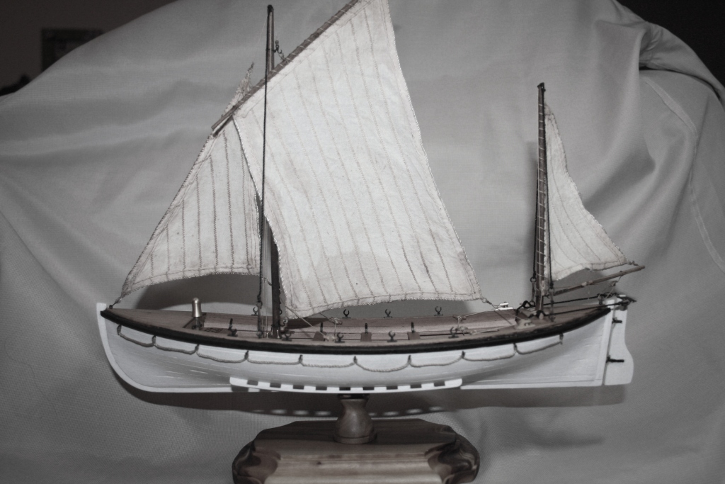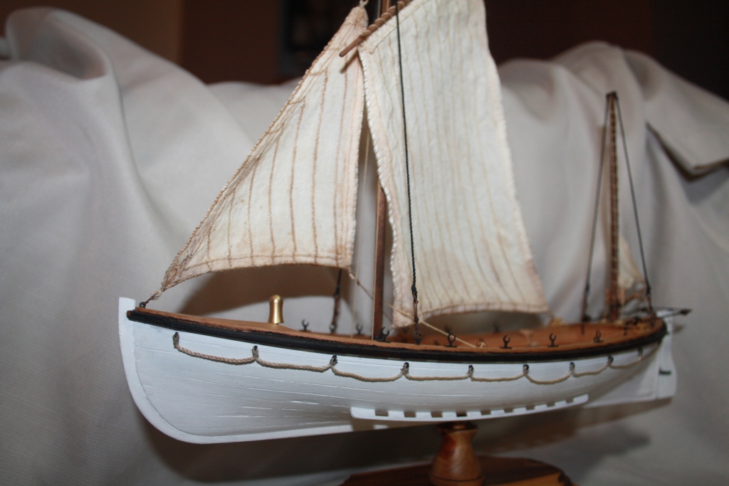 Спасательный вельбот Уайта строился из красного дерева, отличался хорошими мореходными качествами и повышенной остойчивостью. Парусное вооружение позволяло маневрировать на малых просторах. Габаритные размеры вельбота составляли в длину: 10 метров, в ширину: 2,6 метра. Спасательный вельбот Уайта имел воздушные ящики/сухие отсеки, которые наполнялись пробкой, для обеспечения плавучести и непотопляемости. Даже при полном заполнении водой вельбот оставался на плаву вместе с гребцами и пассажирами. Еще известно что они были морскими, речными и озерными.По поводу сборки могу сказать что собралась модель практически полностью из коробки , за исключением парусов, которые мне пришлось заменить на самодельные. В наборе были вложены уже нарезанные паруса лазером , и когда делал имитацию швов ,размеры заготовки заметно уменьшились и их пришлось выбросить. больше особых изменений не производил.