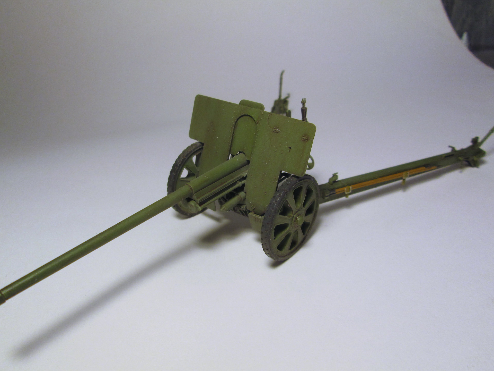 76-мм дивизионная пушка образца 1936 года (Ф-22) в масштабе 1/35, производитель Вronco Models. Одно из таких орудий было уничтожено в районе города Погорелое Городище Калининской (ныне Тверской) области в августе 1942 года. Соответственно, именно этому орудию в дальнейшем будет посвящена небольшая виньетка.