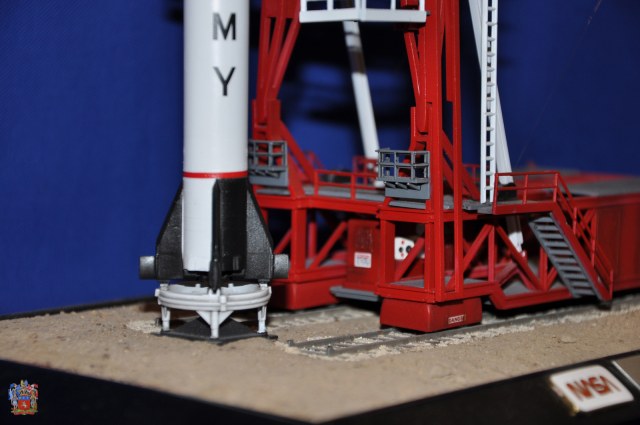 По сборке, сделал подставку, для имитации земли использовал ZIPовскую химию. Немного доработал дизельгенератор, краска Mr.color. Троссы- тонкая металлическая леска. Смывка TAMIYA. Качество деколей отличное. Сама ракета имеет внешнюю грубую расшивку для такого масштаба. Высота стартового комплекса 40 см.
