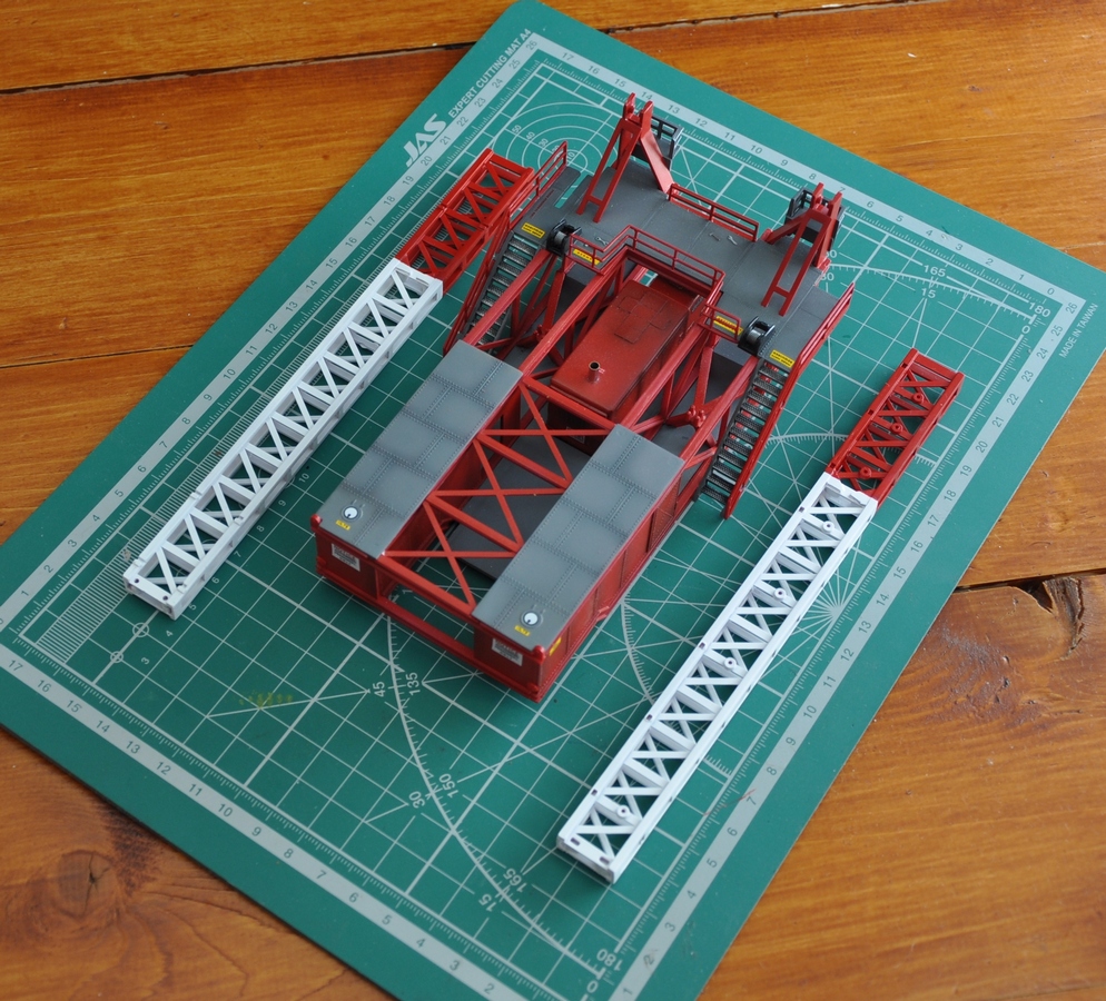 По моделе, качество отливок и стыкуемость нормальные, это не ЛНД, в наборе есть даже человечки, которые бросают инструмент на башне обслуживания, у нас их привязывают к кисти руки, во первых, чтоб не потерять в ракете, а во вторых, чтоб не уронить кому нибудь на голову. Башня обслуживания может быть в двух положениях, в транспортном, когда башня лежит горизонтально земле и назовем "БОЕВОМ" вертикально земле. Также платформ на всех уровнях раздвижные. От себя могу добавить, что стартовый стол идентичен стартовому столу Советской ракеты Космос, сказываются немецкие корни.