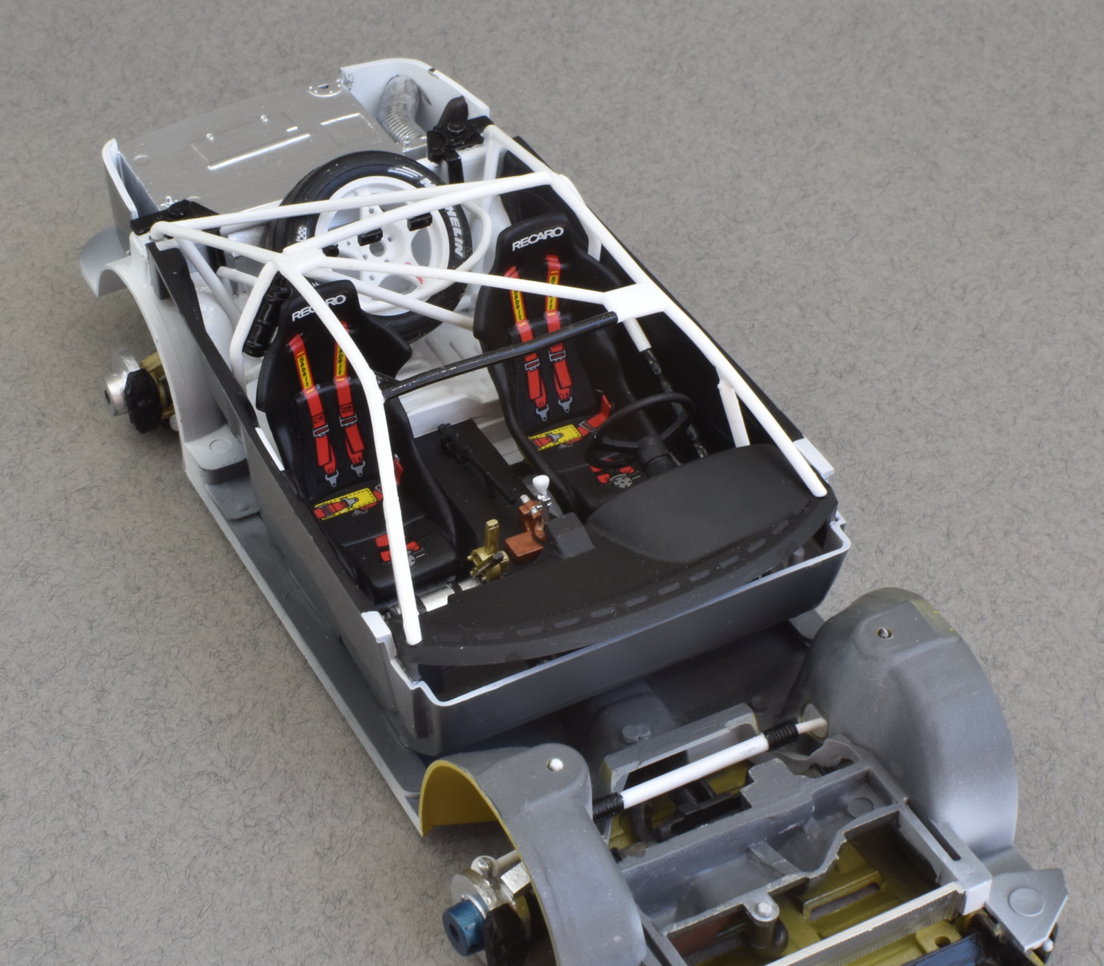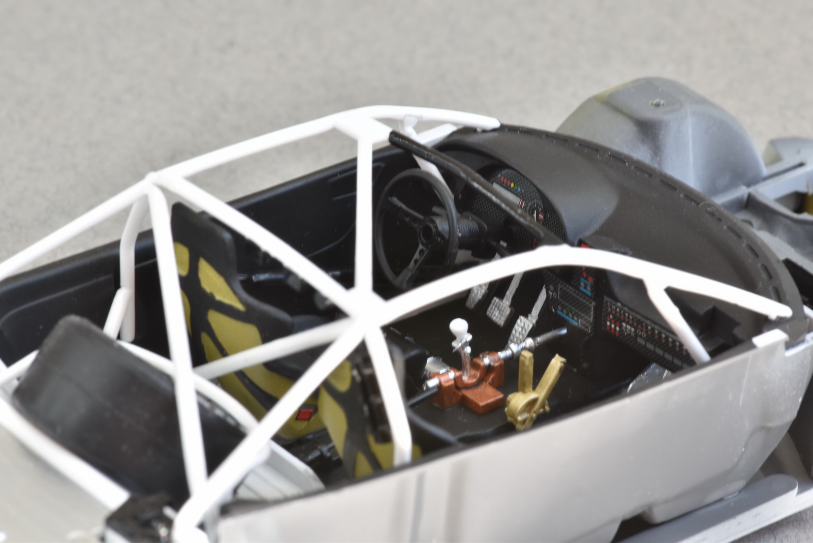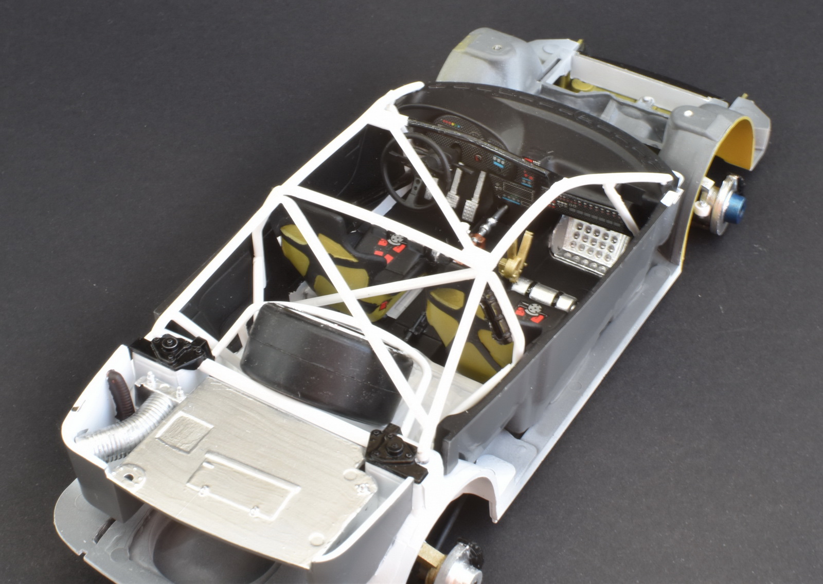 Уважаемые коллеги, представляю очередную модель гоночного автомобиля. Сборка данной модели особого труда не составила, так как деталировка где-то среднего уровня, стыкуемость деталей хорошая. Были проблемы на конечном этапе после нанесения декалей. Декали оказались толстоваты и, после нанесения лаком, не везде удалось удалить так называемую ступеньку. Из-за сложности рельефа кузова пришлось повозиться с его полировкой. Сам кузов не идеален, имелись неровности, которые попытался исправить грунтовкой и шлифованием, но кое-где косяки остались. Красил модель в основном Тамиевской краской из баллонов, лак TS-13, хром AlcladII и Тамиевский маркер (Chromesilver) на мелких участках. Косяки, конечно, есть, но хотел бы услышать Ваше мнение о результате моих трудов.