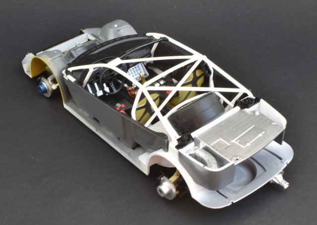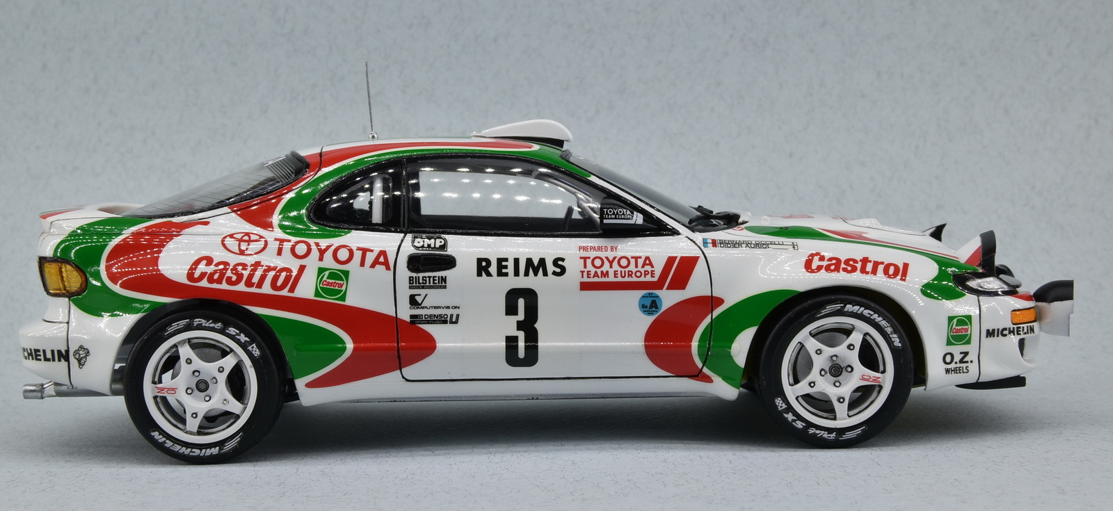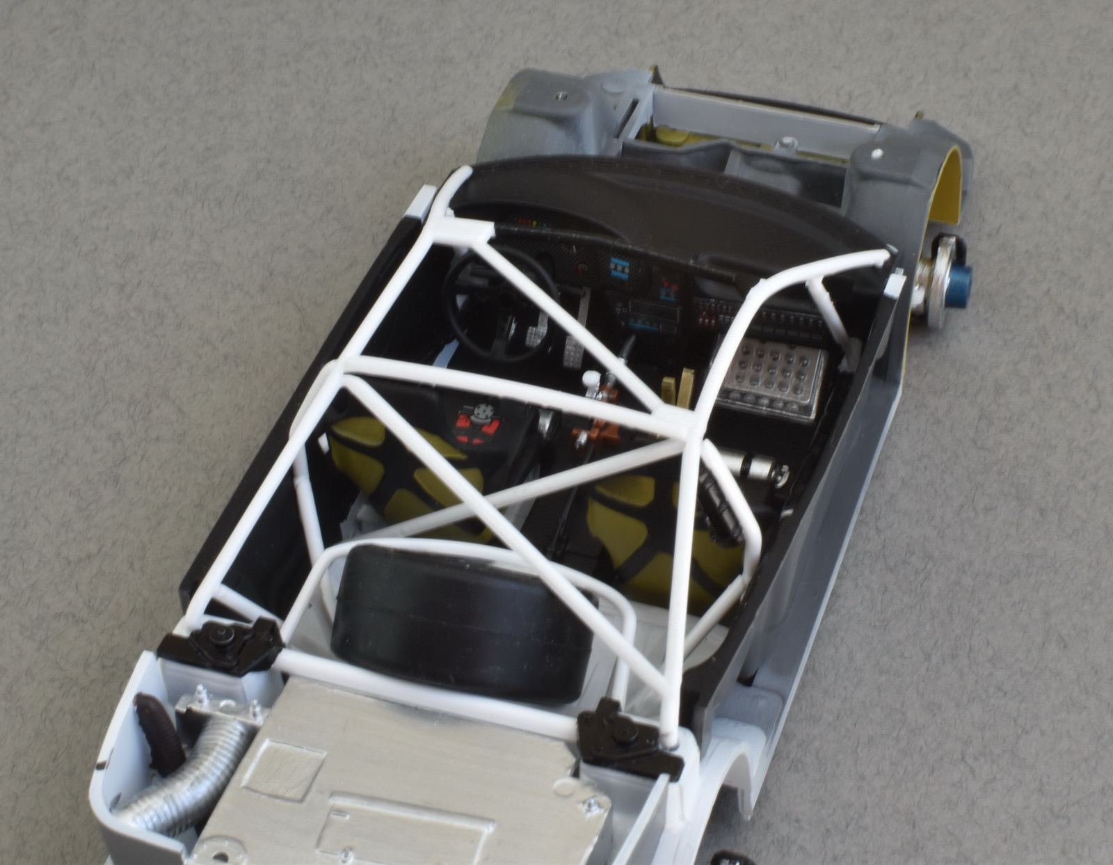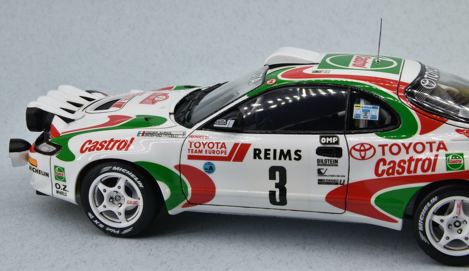 Уважаемые коллеги, представляю очередную модель гоночного автомобиля. Сборка данной модели особого труда не составила, так как деталировка где-то среднего уровня, стыкуемость деталей хорошая. Были проблемы на конечном этапе после нанесения декалей. Декали оказались толстоваты и, после нанесения лаком, не везде удалось удалить так называемую ступеньку. Из-за сложности рельефа кузова пришлось повозиться с его полировкой. Сам кузов не идеален, имелись неровности, которые попытался исправить грунтовкой и шлифованием, но кое-где косяки остались. Красил модель в основном Тамиевской краской из баллонов, лак TS-13, хром AlcladII и Тамиевский маркер (Chromesilver) на мелких участках. Косяки, конечно, есть, но хотел бы услышать Ваше мнение о результате моих трудов.