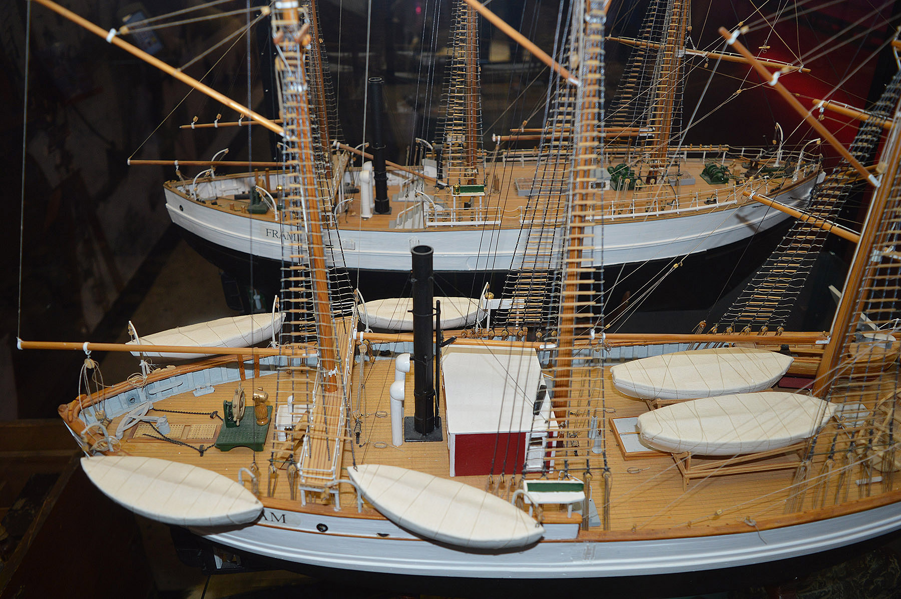 Fram / Фрам - наверное один из самых знаменитых мирных кораблей в истории человечества. Был построен на основе идей Фритьофа Нансена конструктором Колином Арчером (первое фото в обзоре - модель, сделанная Колином до постройки судна) под руководством Отто Свердрупа.
