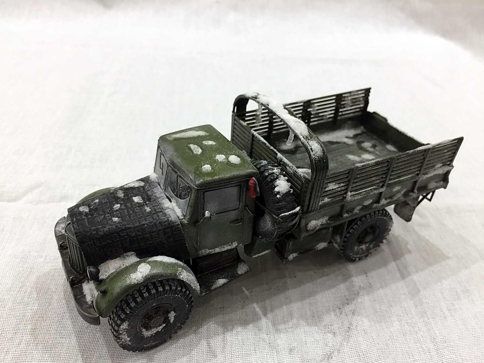 Грунтовал валеховским черным грунтом, красил краской от A-Model. Впервые за всю историю своего моделестроения решил применить зимний везеринг (тем более, что зима на носу уже).