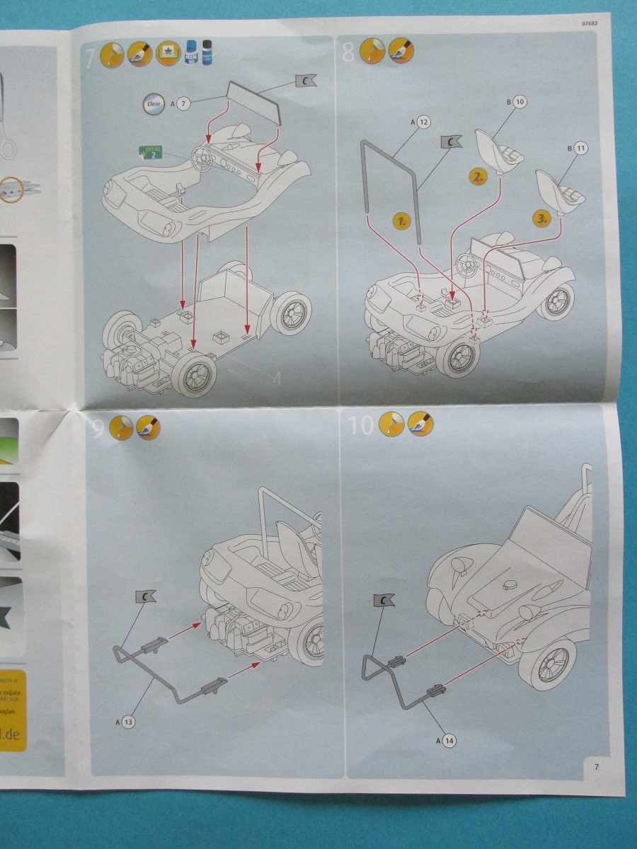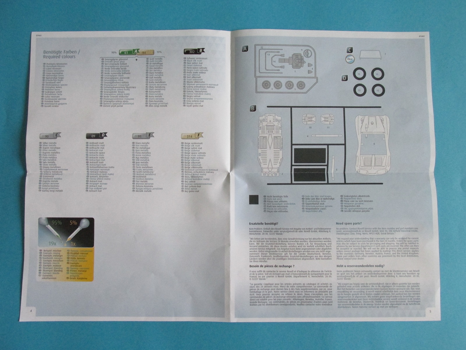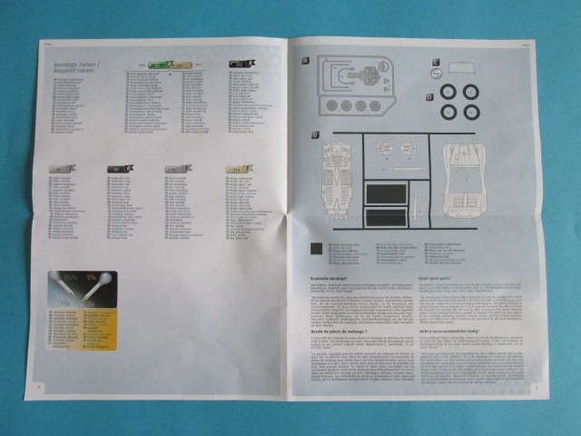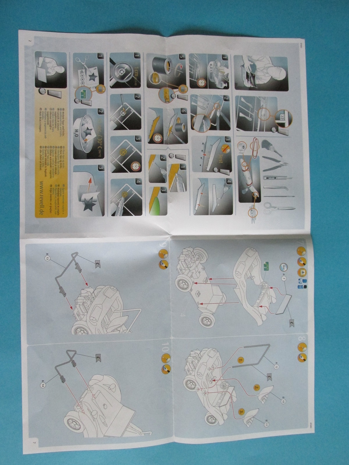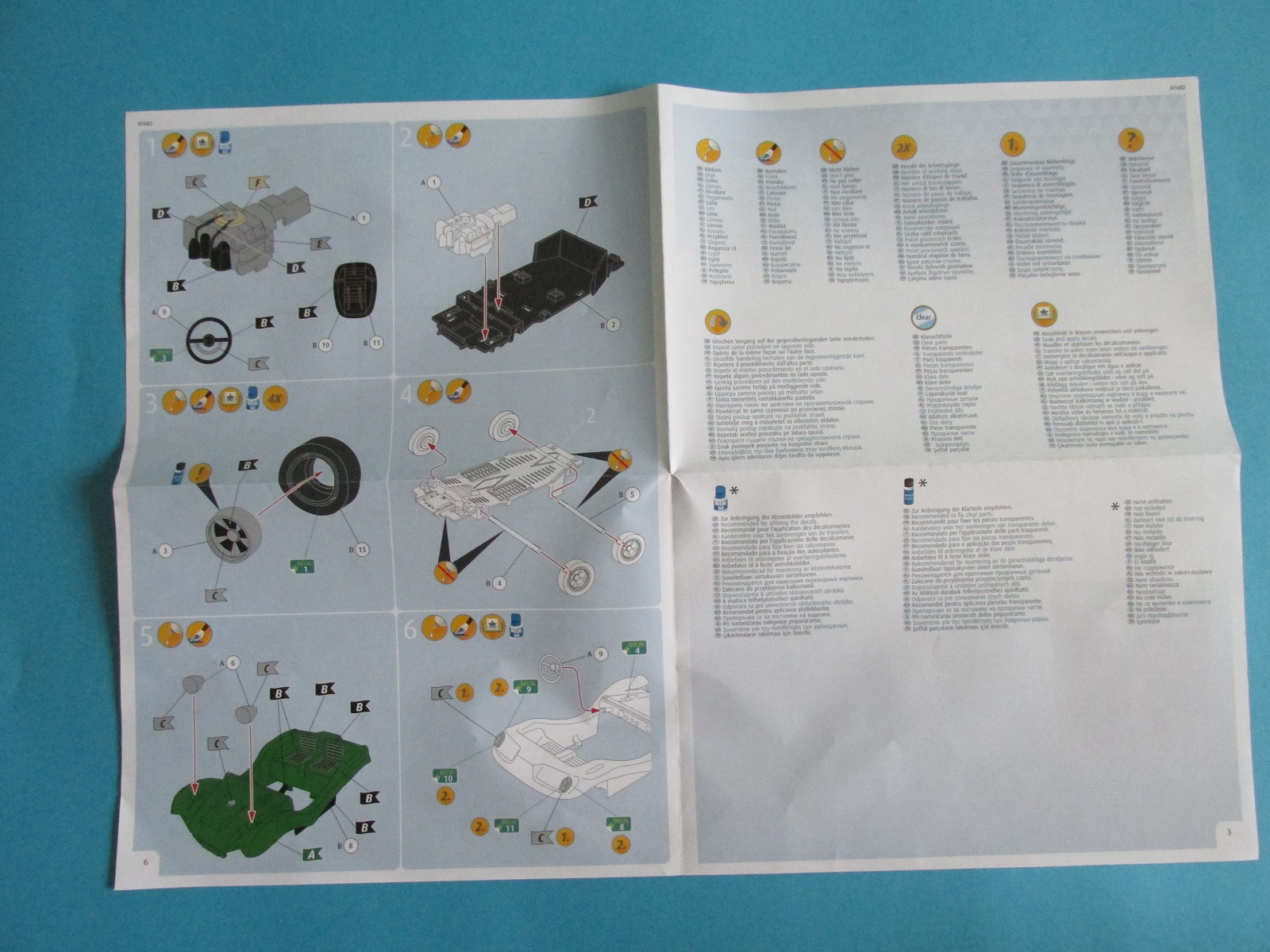 Инструкция дана в виде двух листов в формате А3, сложенные в четверо. Всего десять операций, совмещённые с покраской и нанесением дек, но требует внимательности.