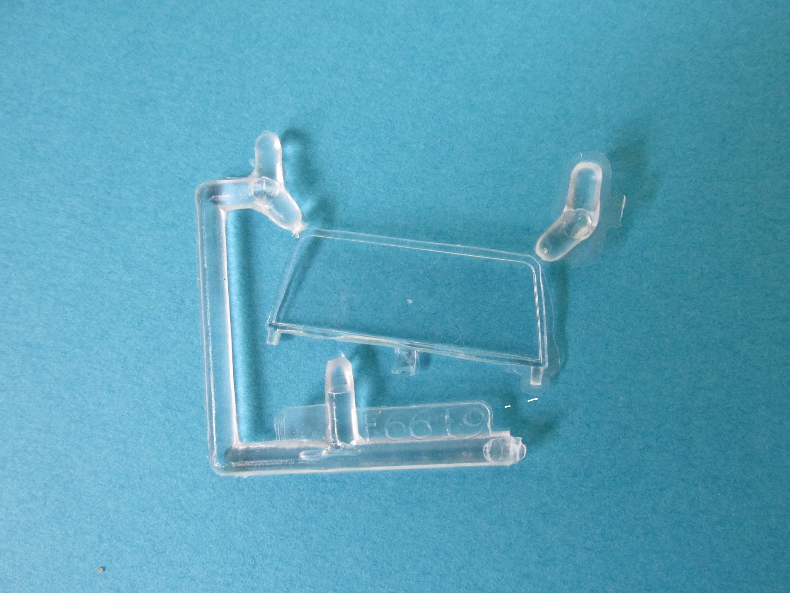 На прозрачном литники только лишь ветровое стекло, отлитое вместе с рамой.