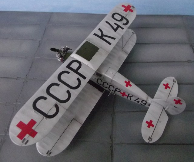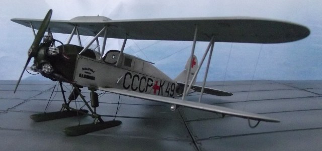 Добрый день уважаемые коллеги! Позвольте представить Вам крайнюю работу из трёх, завершенных после летнего сезона. Это конверсия модели ICM, первый её выпуск, лыжный вариант, в У-2 С 1 (санитарный). Модель была начата в начале текущего года. Сборка проходила неспешно, с перерывами. Итак, что сделано: - исправлено верхнее крыло, устранён вырез в крыле и сделан накладной топливный бак; - срезана верхняя часть фюзеляжа от второй кабины и изготовлен «горб» для размещения носилок с больным; - двигатель – симбиоз родного с цилиндрами от Вектора + проводка и толкатели клапанов из стальной проволоки; - переделан кабан верхнего крыла; - по левому борту изготовлен кронштейн для погрузки носилок; - качалка руля высоты перенесена под переднюю кабину; -окрашена модель Аканом; - далее лак, деколь Бегемот; снова лак, смывка и матовый лак; - в завершение верёвочное хозяйство – бантик и капроновая нить, амортизаторы лыж изготовлены из тянутой уховёртки через которую протянута капроновая нить. Есть недостатки: уже на окрашенной модели вспомнил, что не убрал снизу капота обтекатель. Оставил как есть. С уважением, Дмитрий.