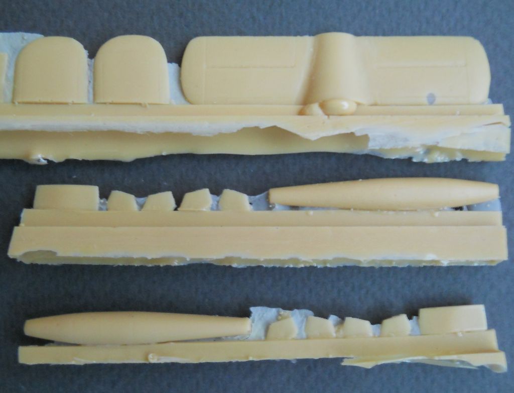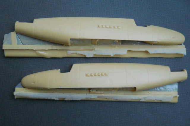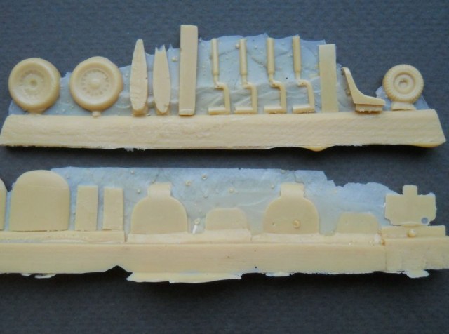 Модель из смолы от фирмы VAMI Models в масштабе 1/72 упакована в картонную коробку с верхним открытием. Литьё довольно среднего качества, присутствуют дефекты. Если детали планера выглядят приемлемо, то часть мелких деталей потребуется менять или дорабатывать. Ваку-фонарь присутствует в двойном экземпляре. В комплекте идут две бомбы-торпеды BT400. Декали отсутствуют. Инструкция минималистична.