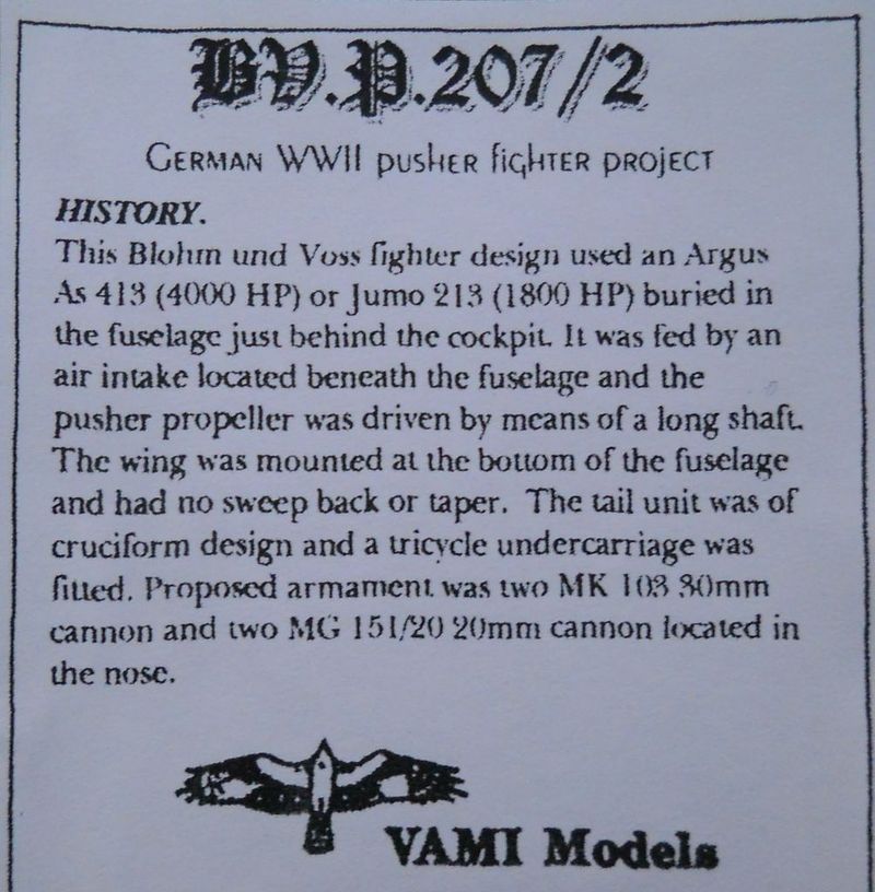Проект истребителя Blohm und Voss BV P.207.02 (июль-август 1944 г.). Информации по нему крайне мало. Тем не менее, что есть - посмотреть можно тут.